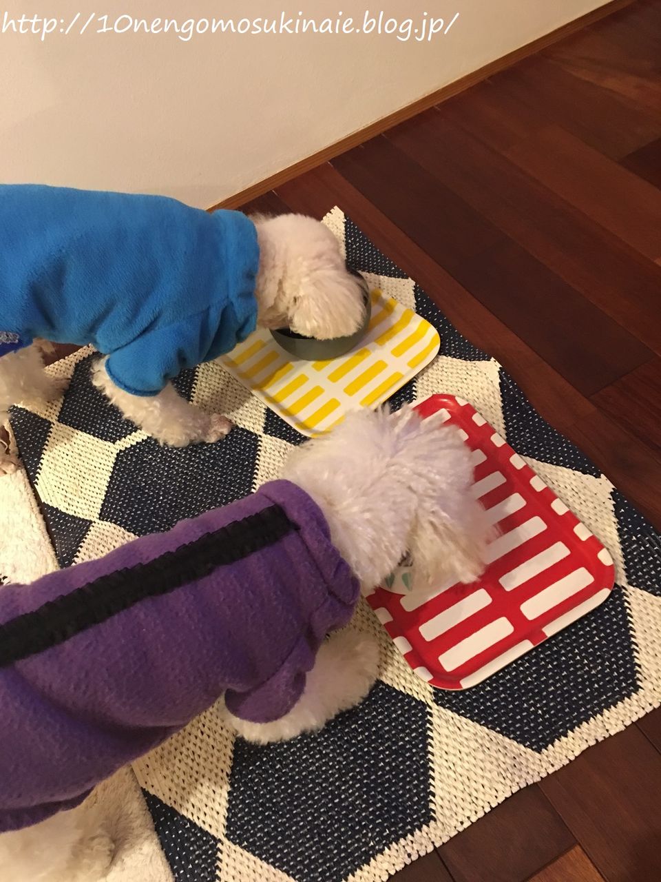 マットの上にしたら脚が滑らず、食べやすくなったようで、いつもにも増してモリモリ食べていました(;´∀`) がっつき~