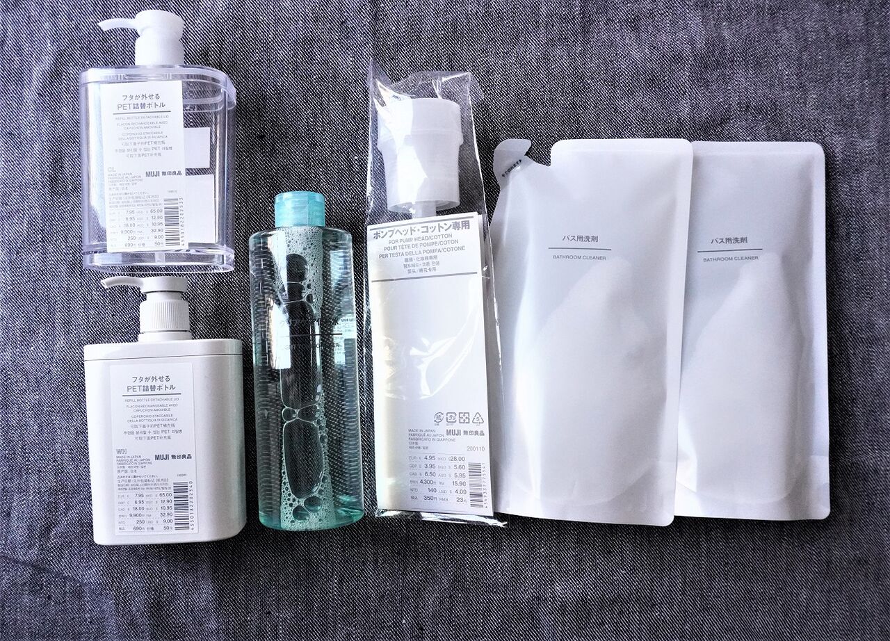 クリア化粧水、無印良品のお風呂洗剤は