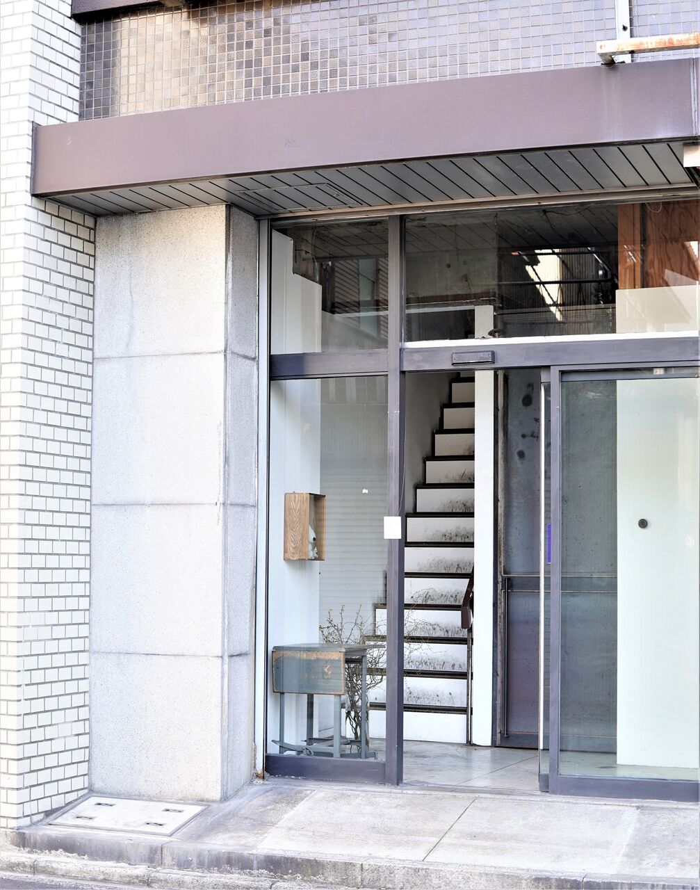 ビルの2階が店舗でビルの前に朝
