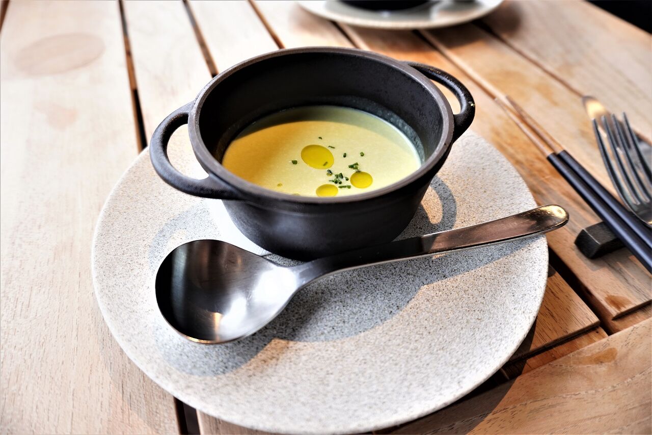 冷たいスープがまず出てきました。