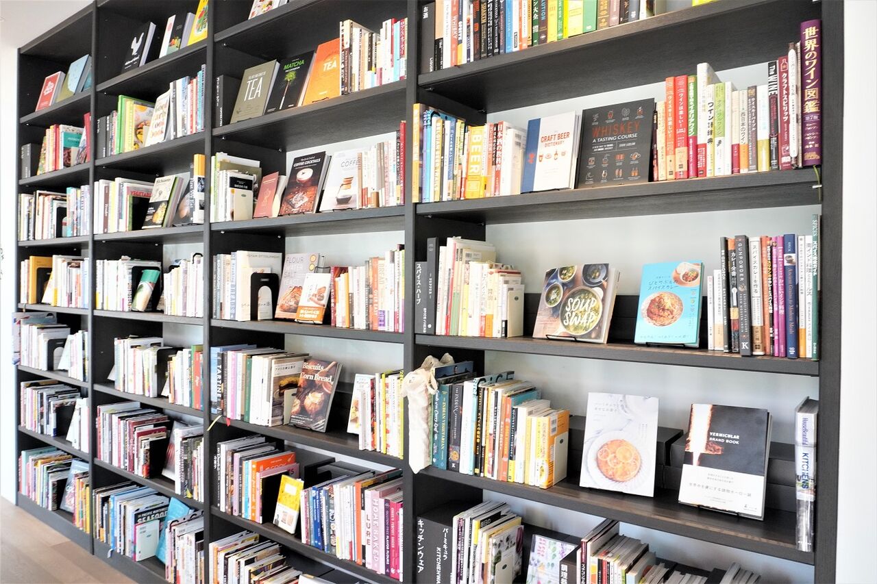 料理本の大きな本棚コーナーもあって、