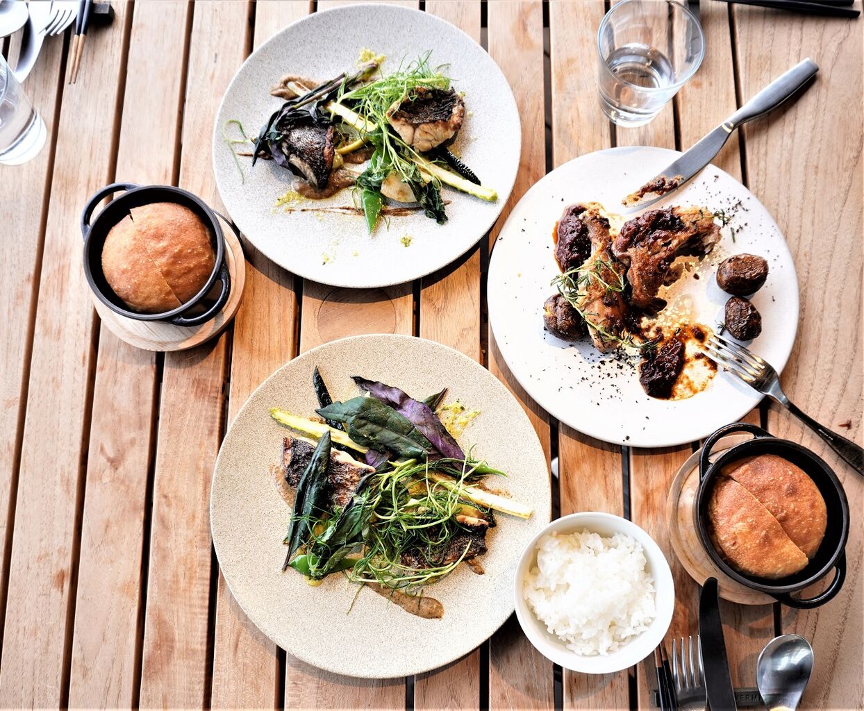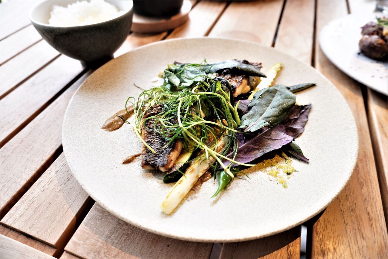 「薪火で焼いたイサキ 初夏の野菜の