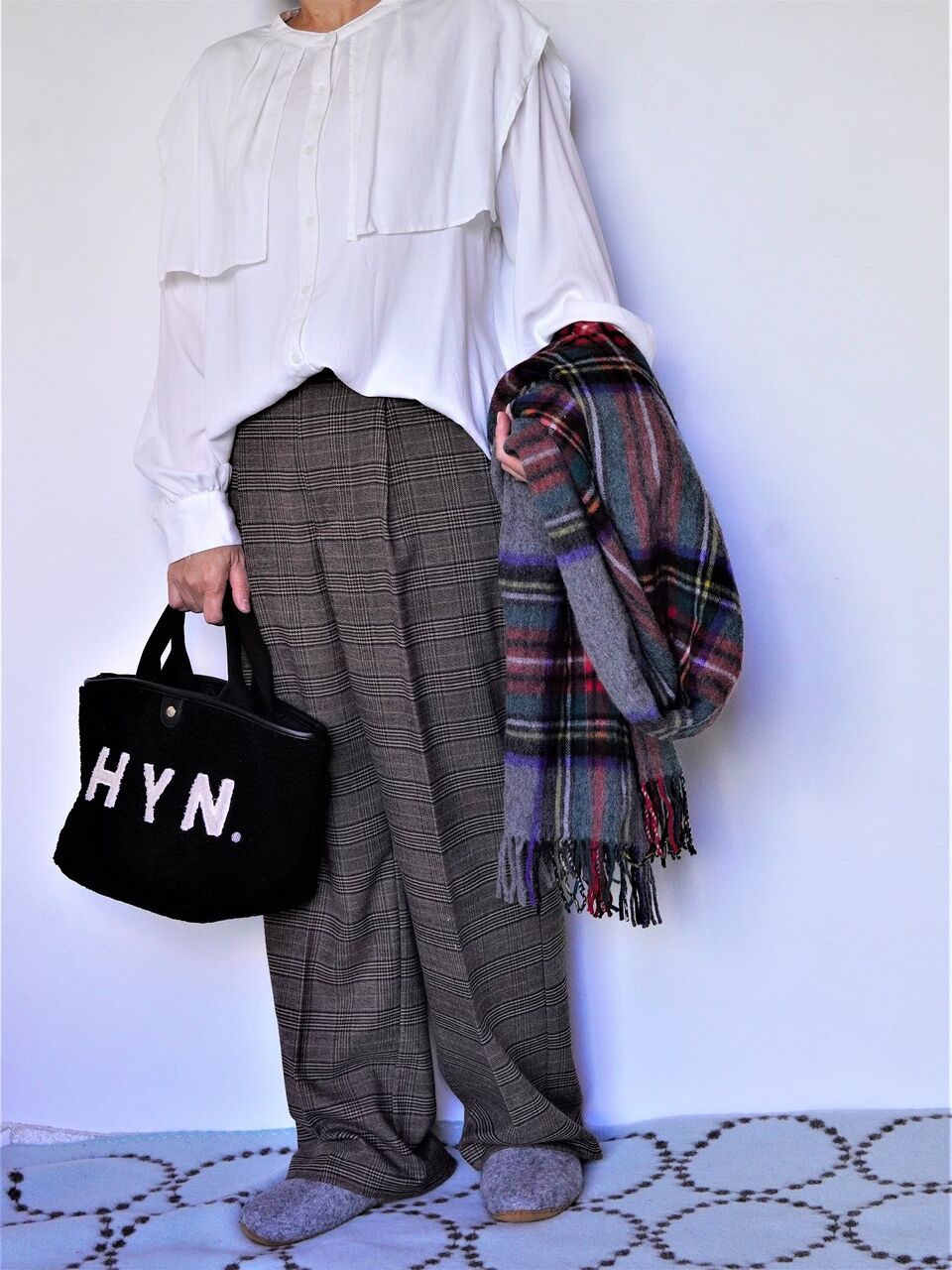 マフラーとか冬っぽいバッグにも合わせやすいです。