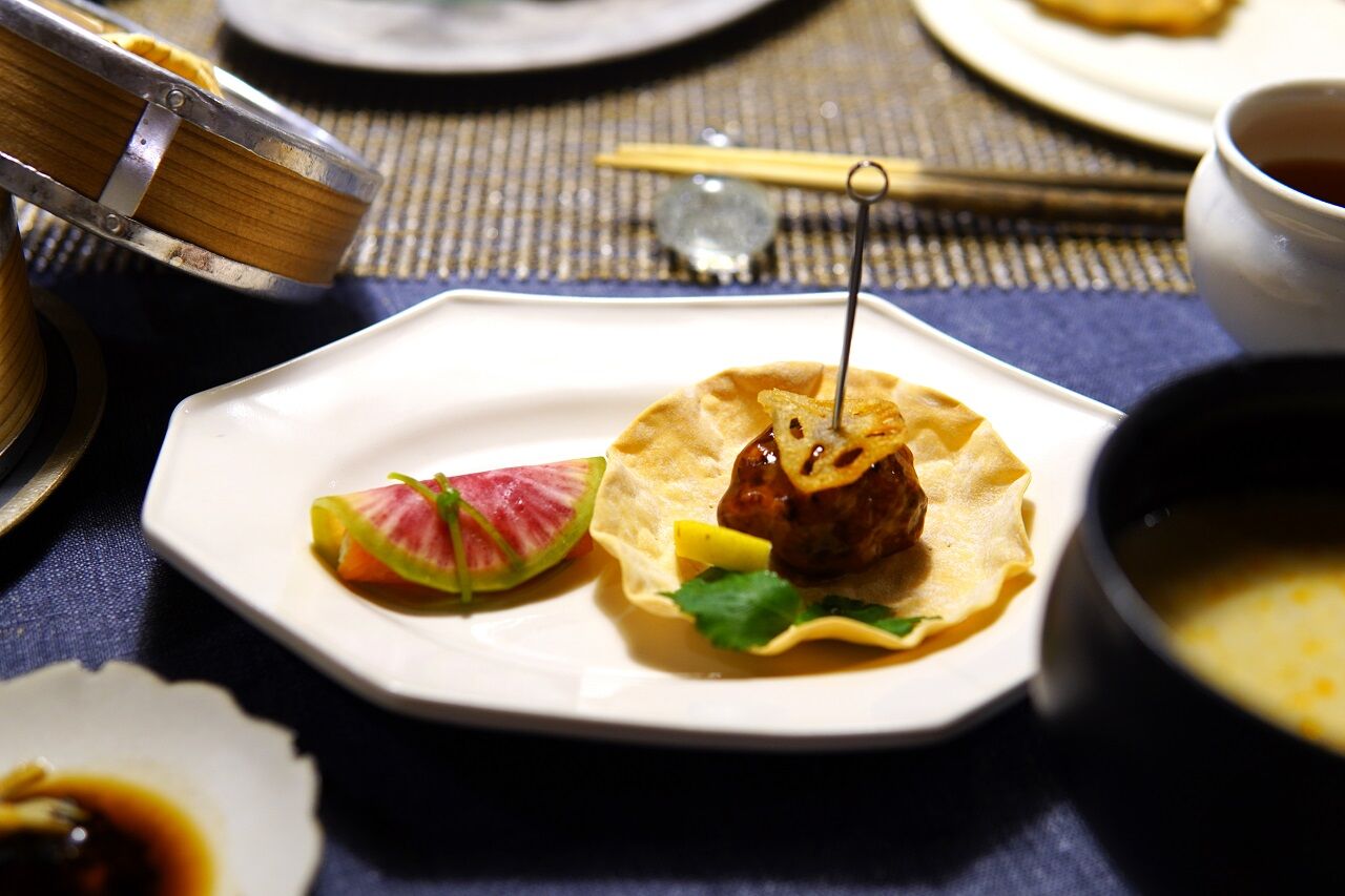 まず小さいせいろはテーブルの盛り付け