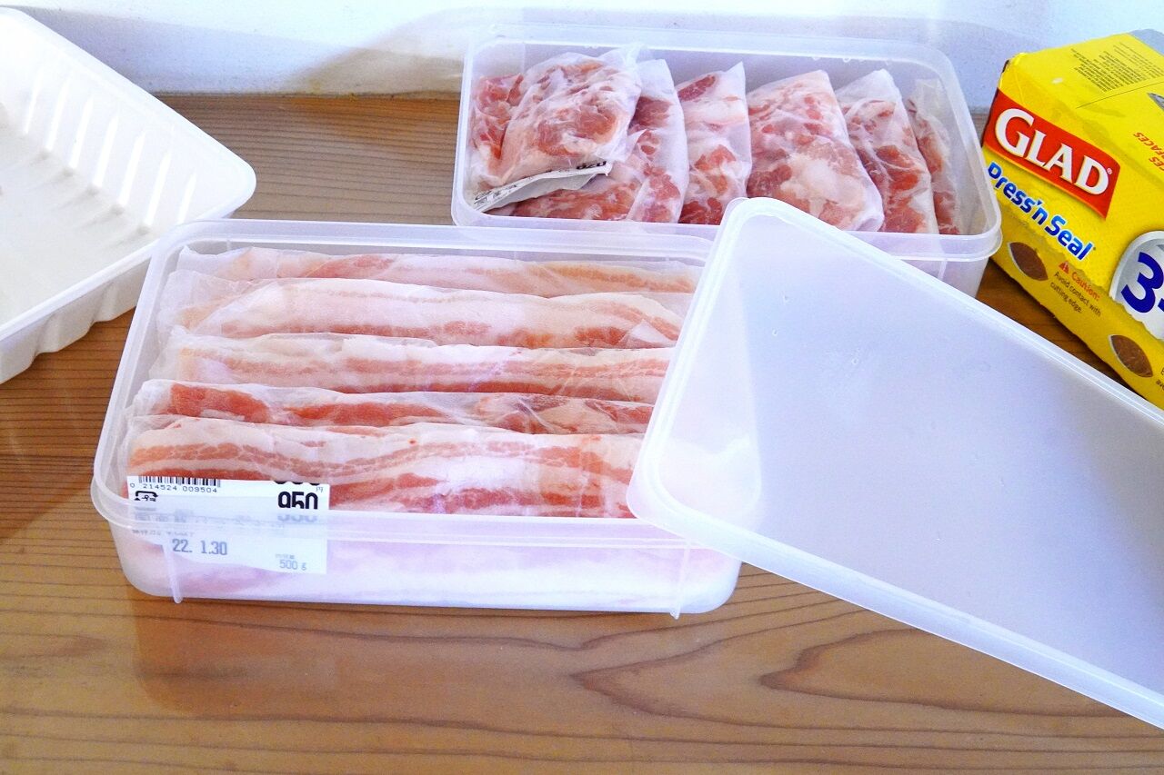 豚バラ肉も小分けしてもう一つの保存容器に