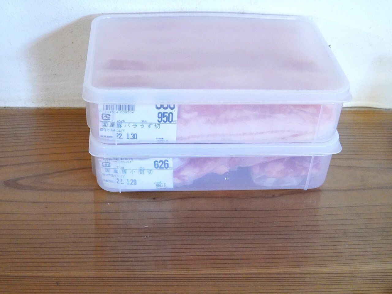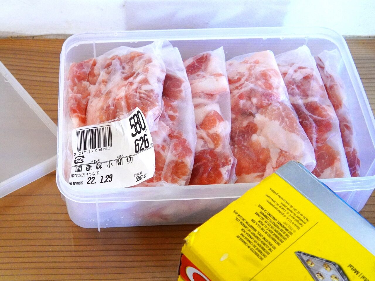 写真の豚肉の細切れは550gでした。