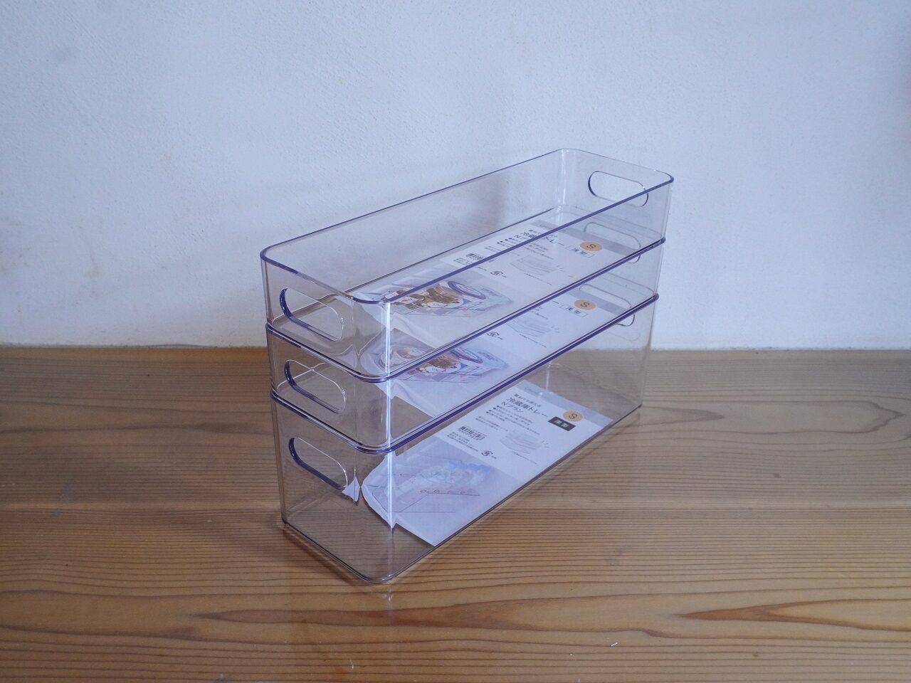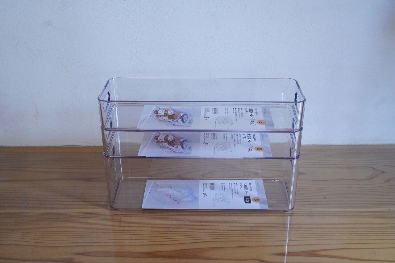 今日はニトリの冷蔵庫トレーを使って