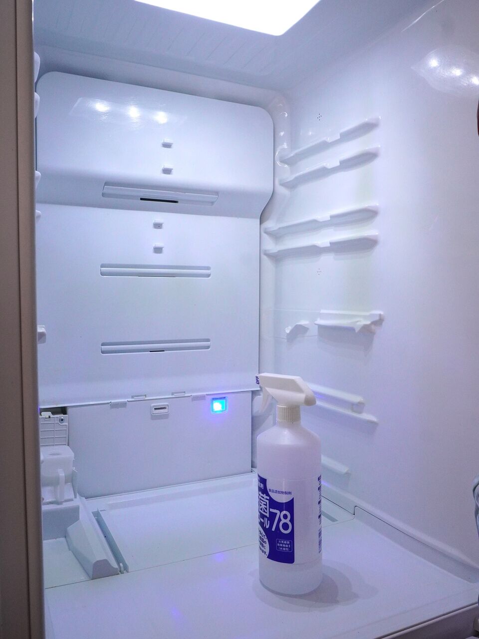 棚板も外して洗って、食品用消毒スプレーで