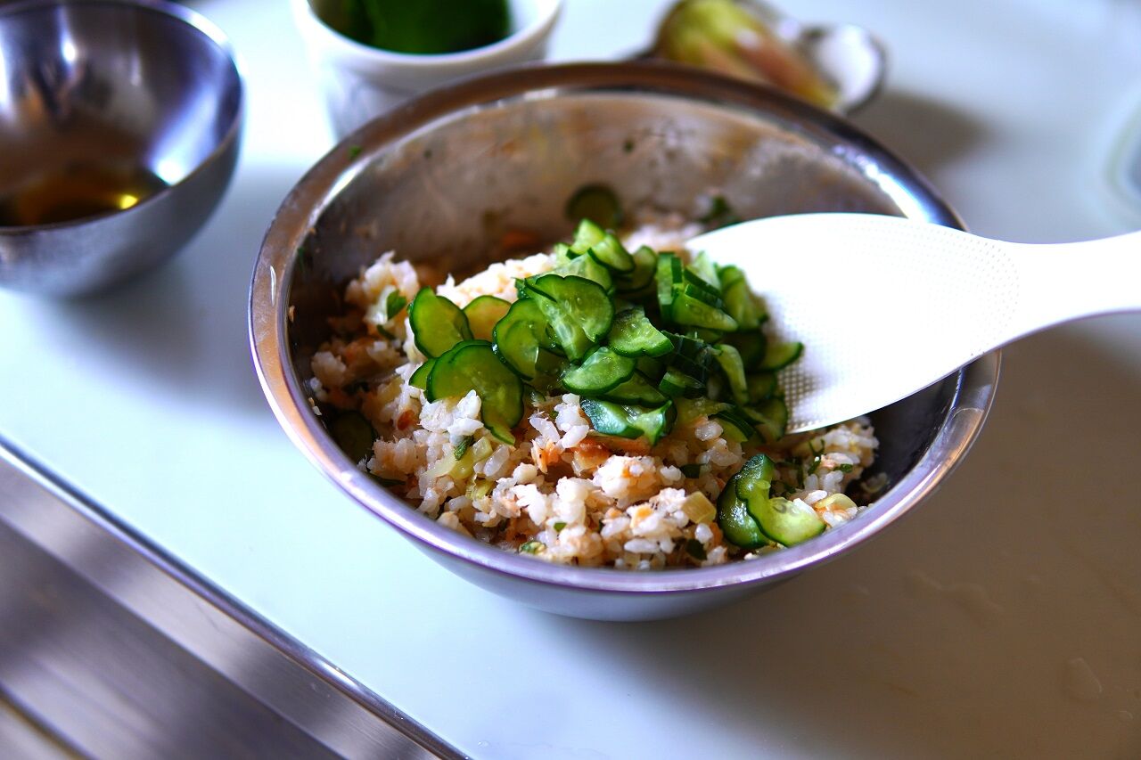 大葉、ごまを入れました。