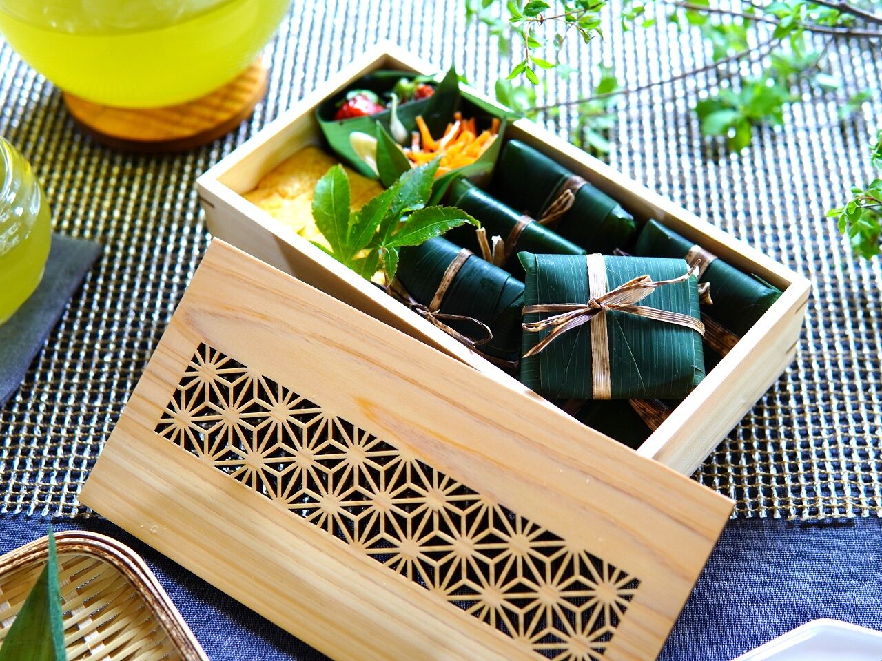 和菓子を透かし柄の料理箱に入れたら