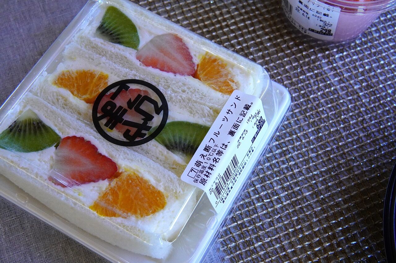 萌え断フルーツサンドって書いてある。笑