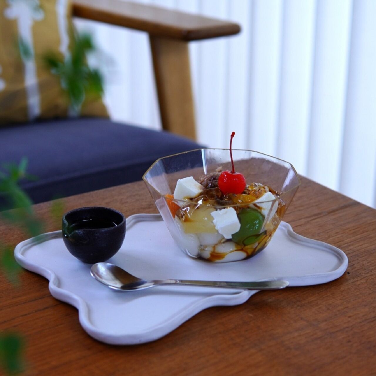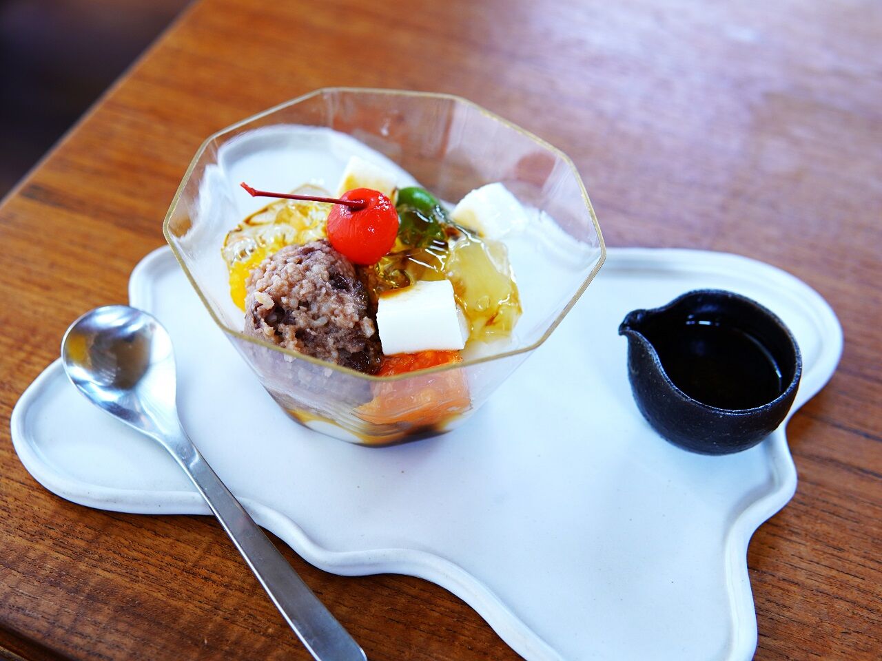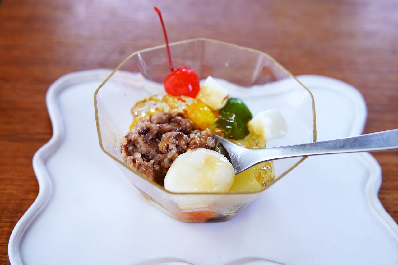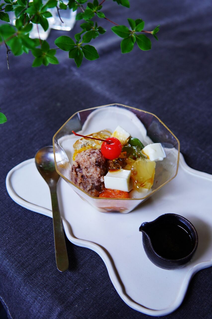 発酵あんこ、白玉だんご、フルーツシロップゼリー、