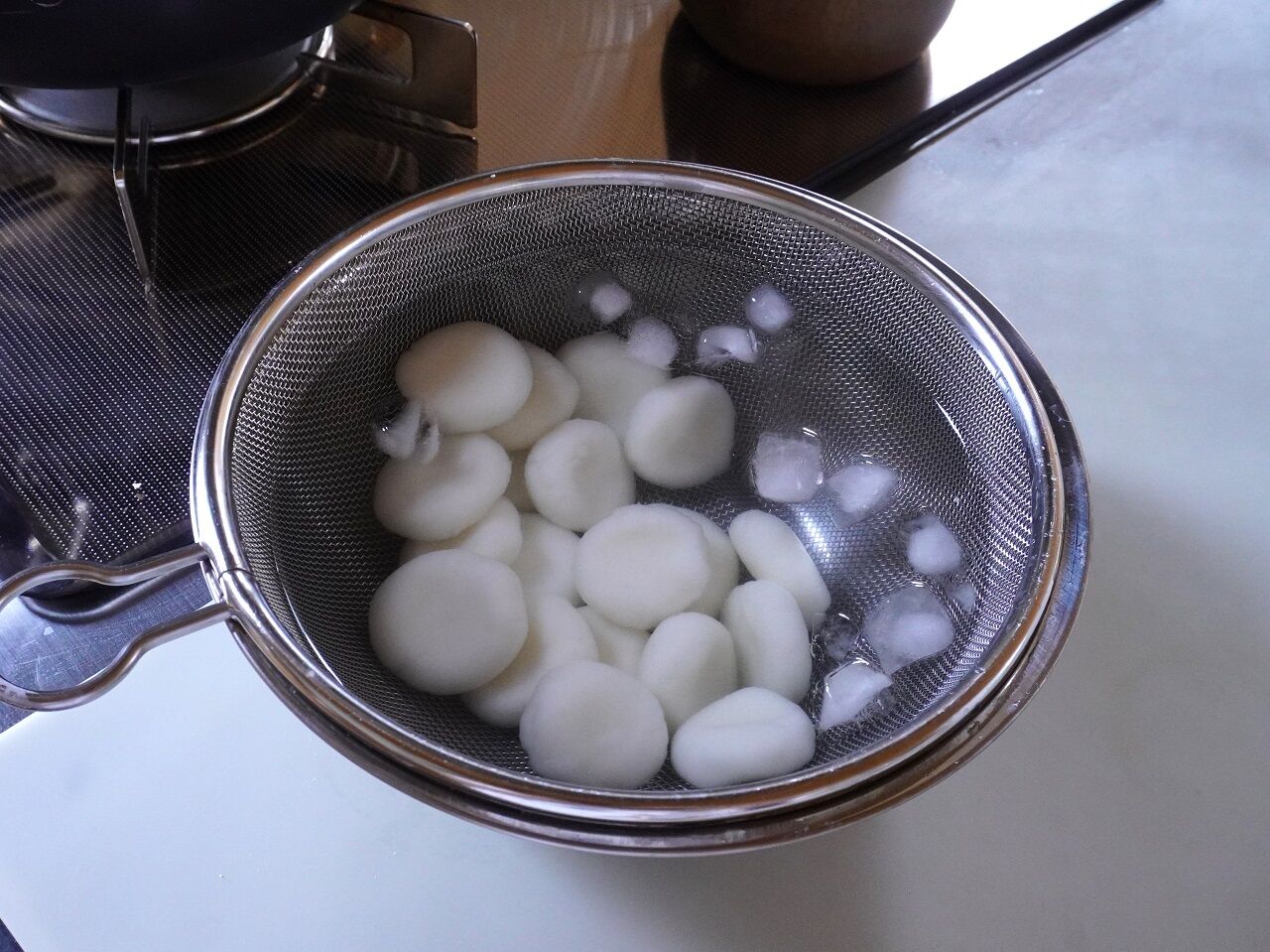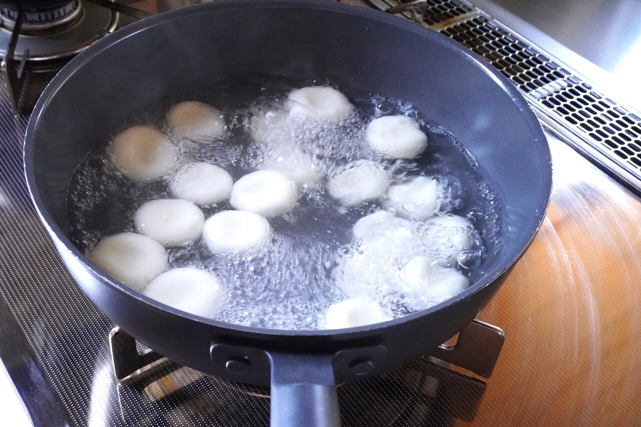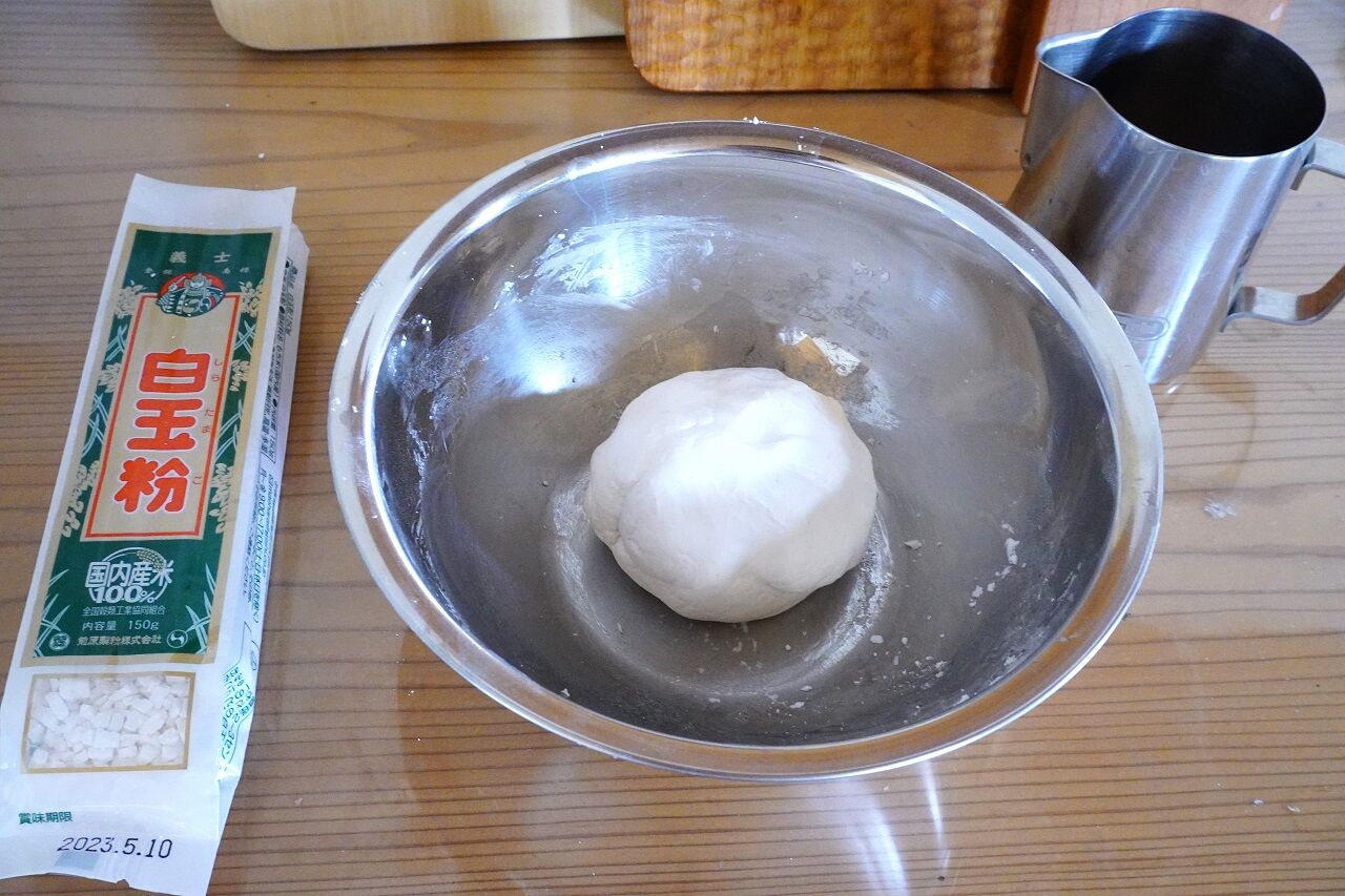 白玉粉を水で練ってお湯で茹でました。