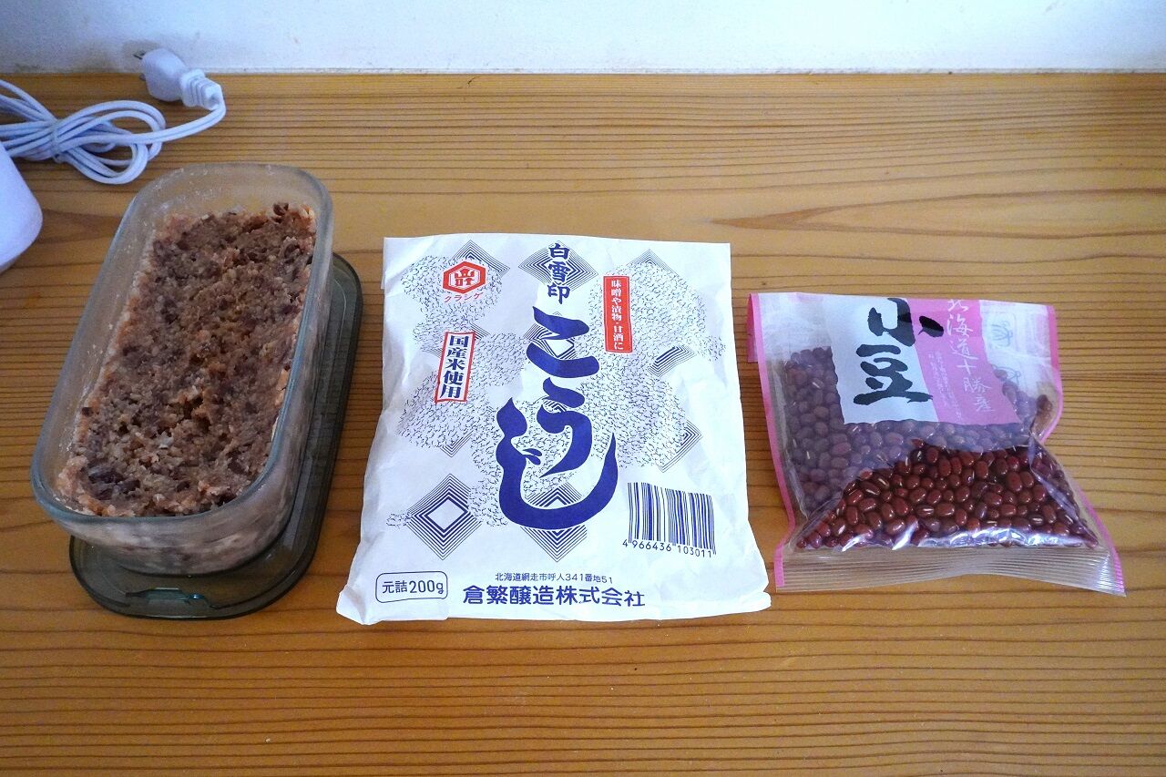 あずきを柔らかく煮て米こうじと