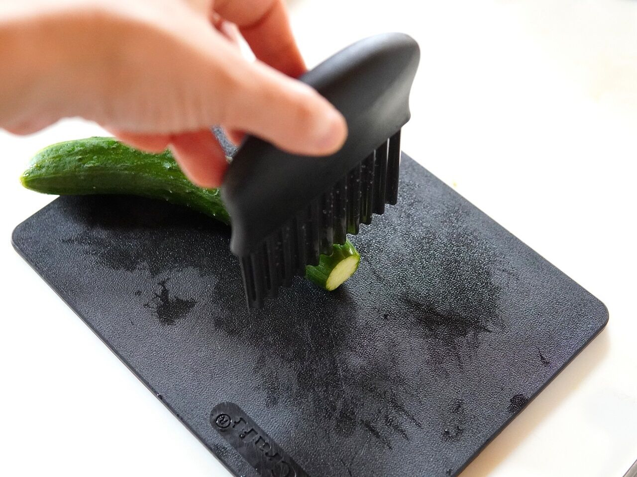 ぐっと野菜に押し付けてカットするだけ。