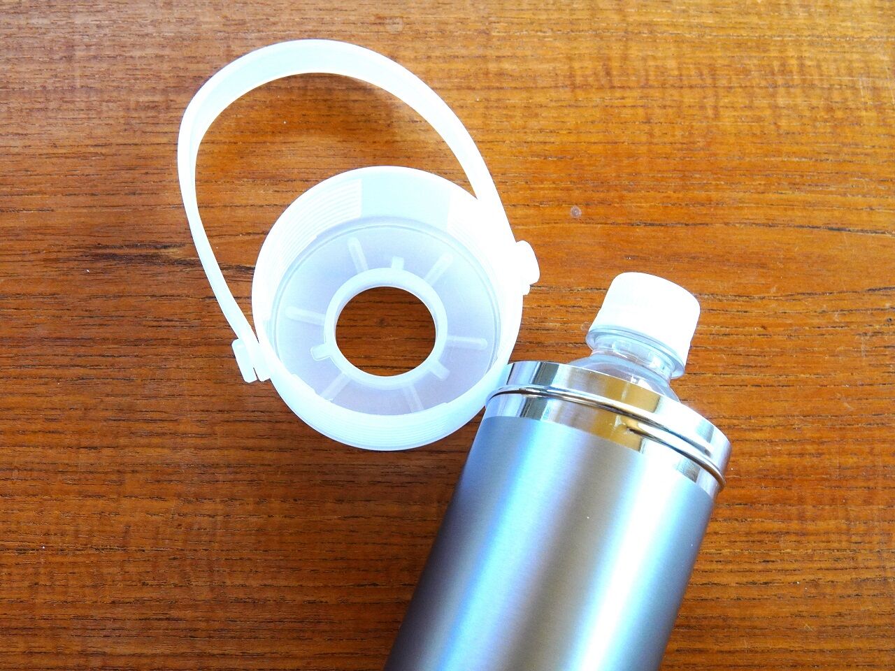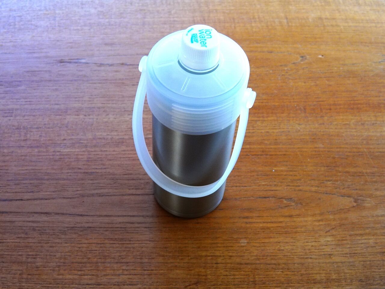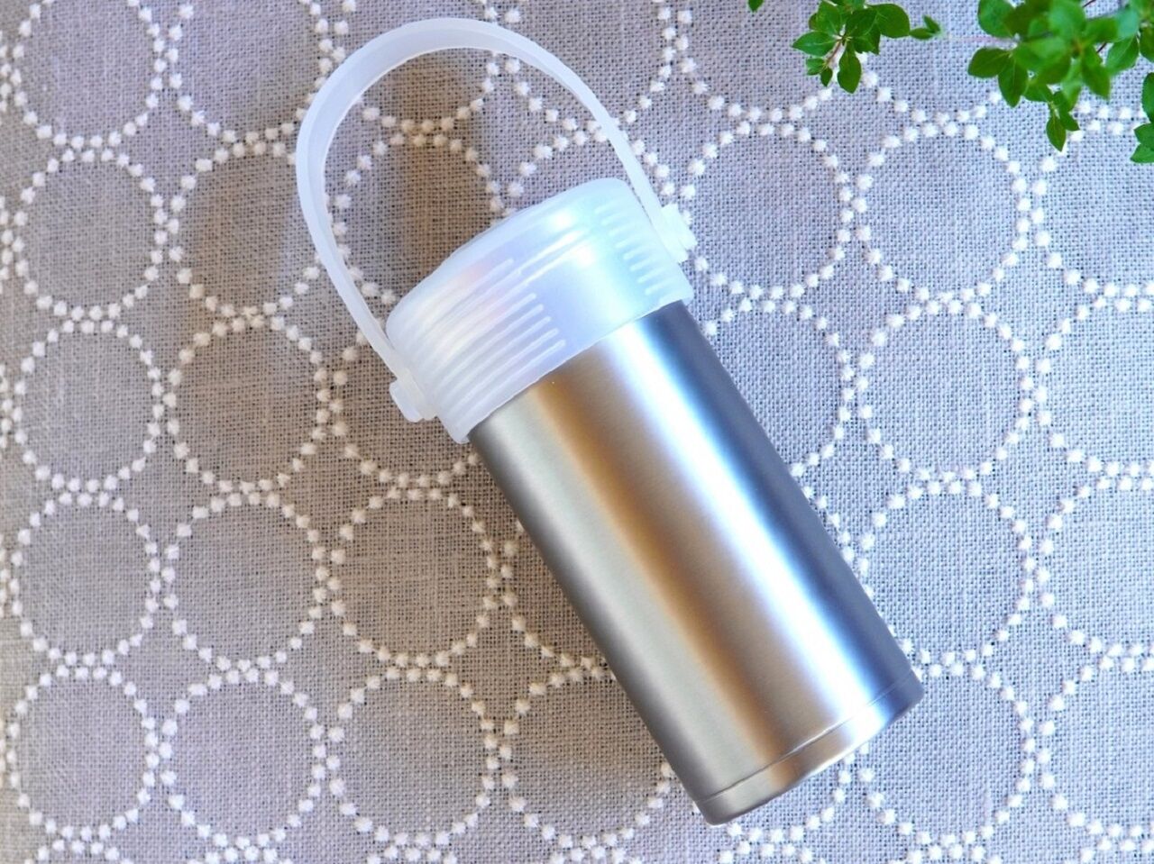 ステンレスの本体と白いフタと