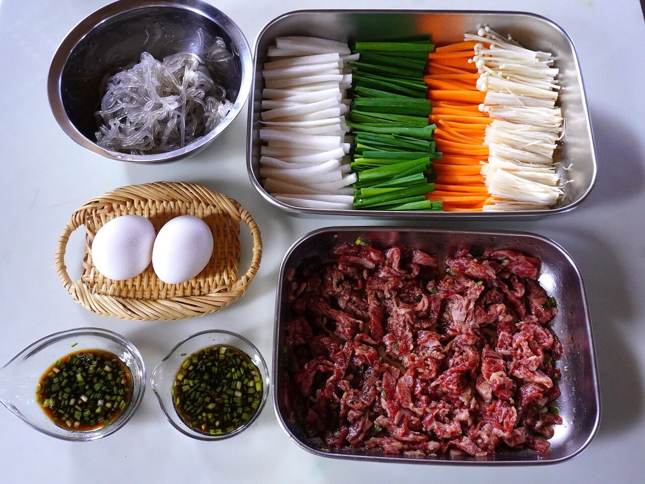 日本のすき焼きと少し違って、牛薄切り肉に