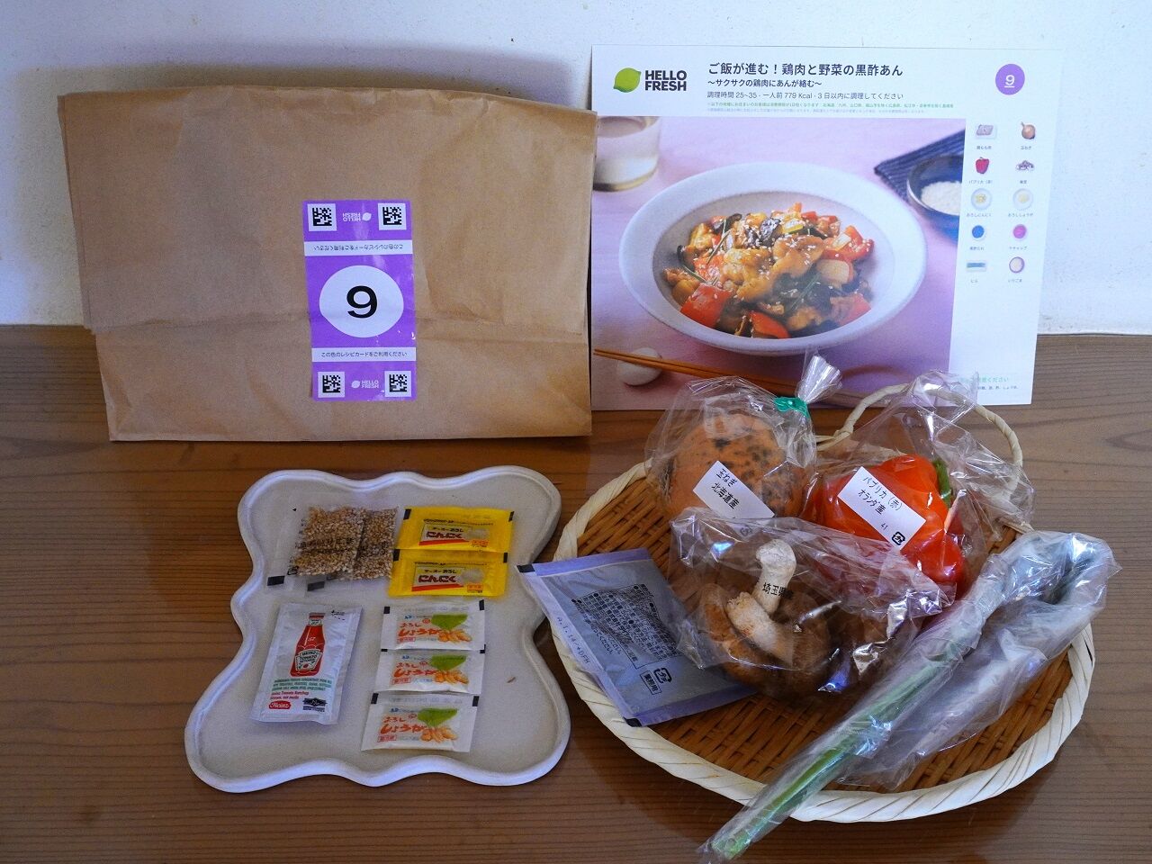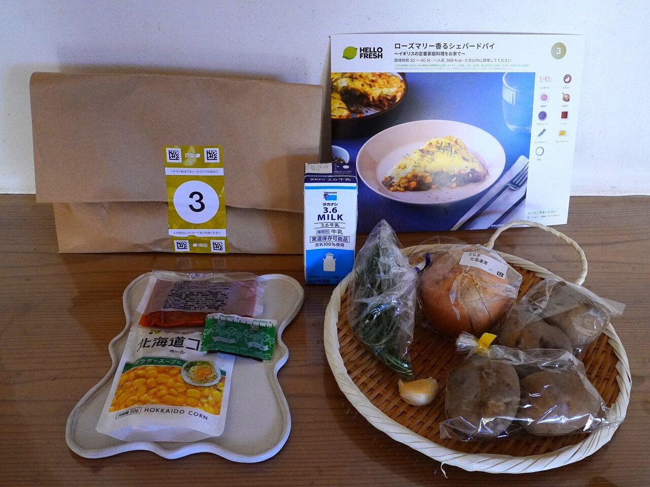 紙袋にそれぞれのレシピの材料と
