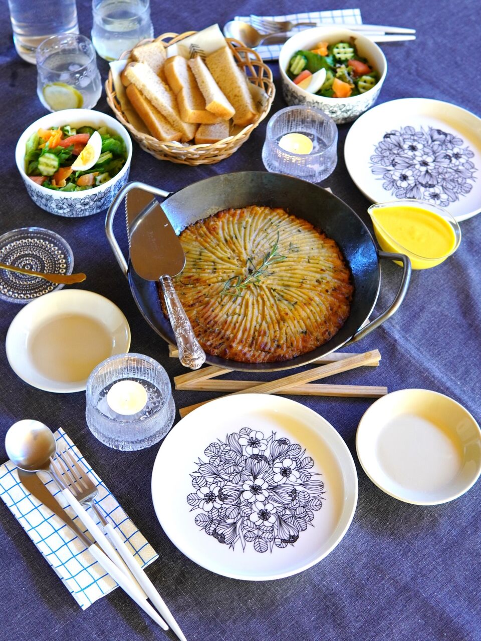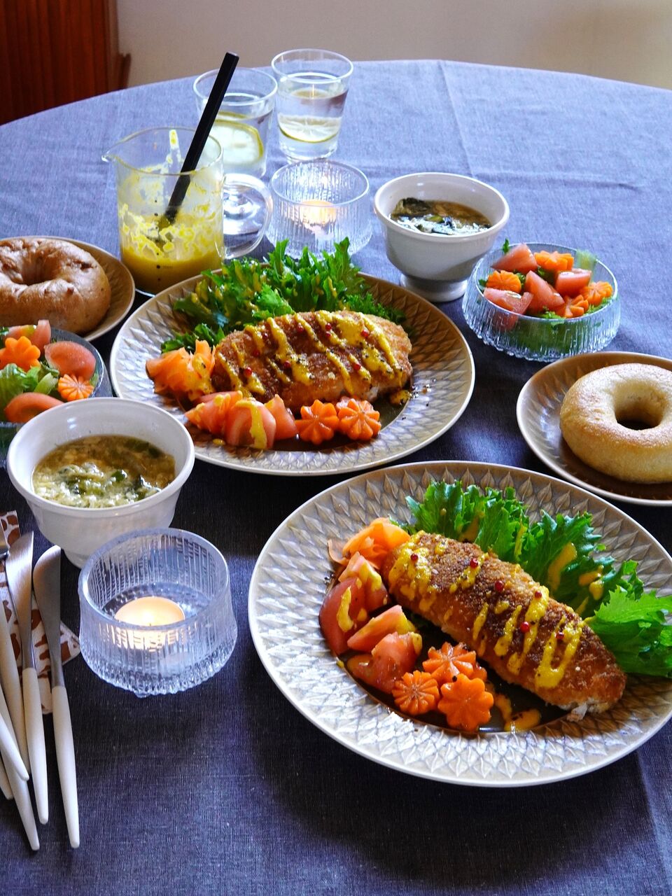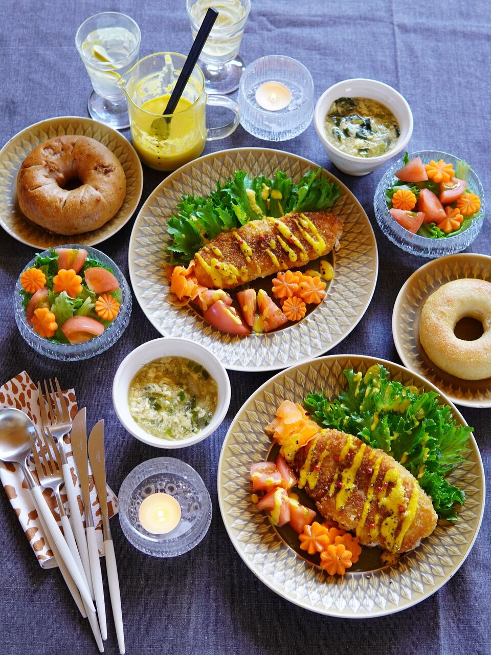 スープ、パンは自分で準備しました。