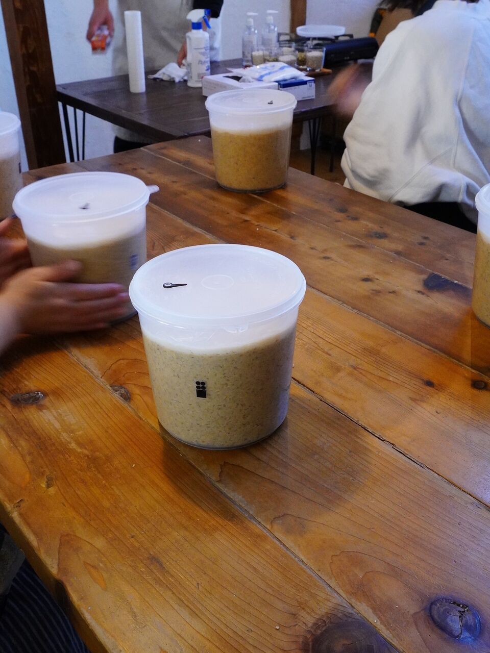 白い容器が今仕込んだばかりのもの。
