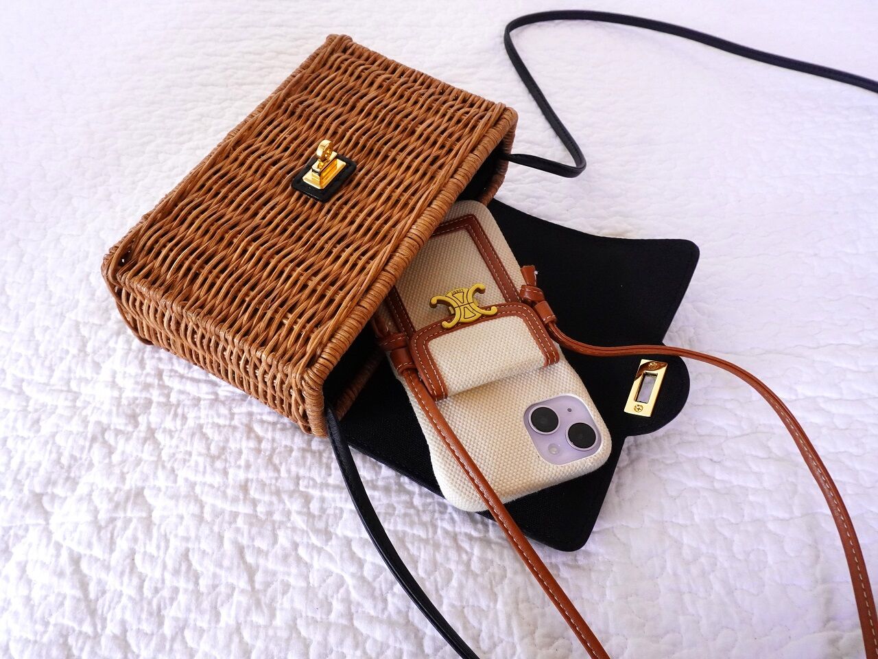 斜めがけのポシェットタイプのかごバッグを