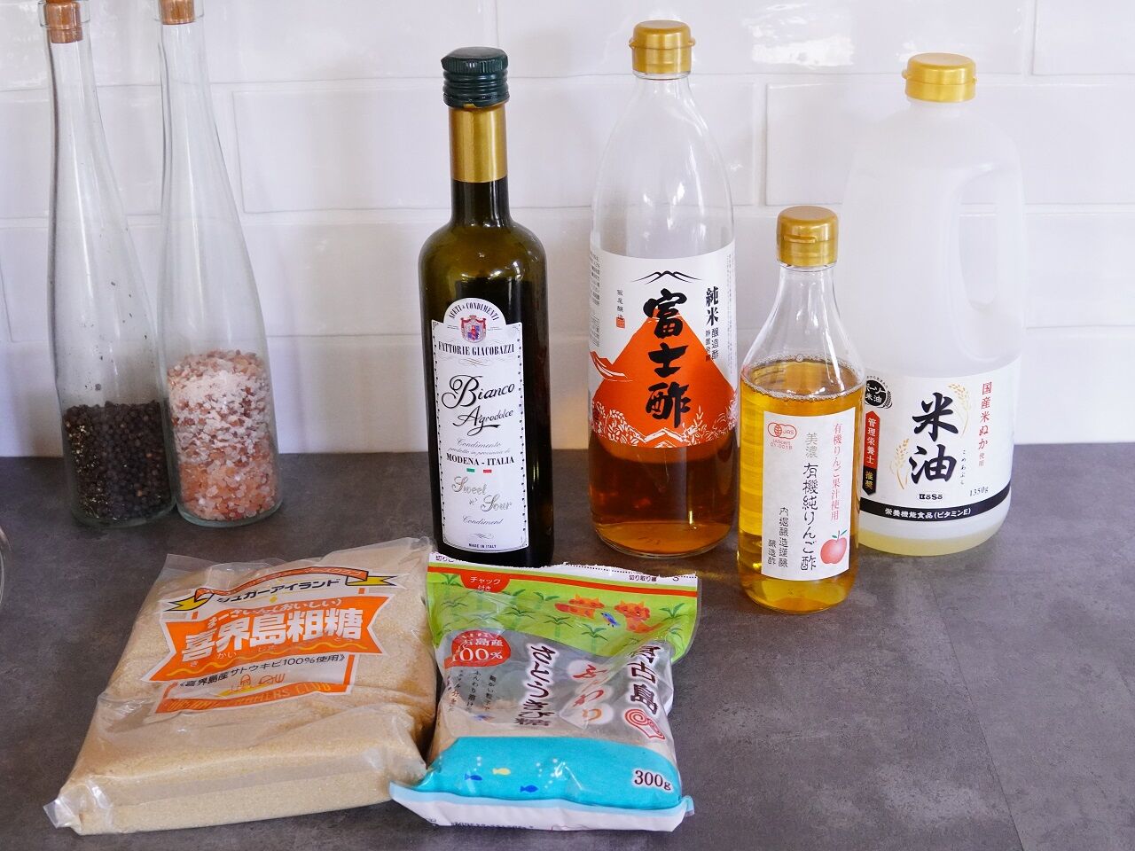 あと粗糖やお酢、りんご酢、ビネガー系も