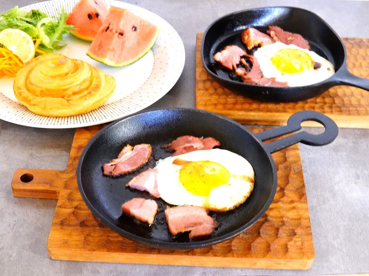 朝食でベーコンエッグ作りました。
