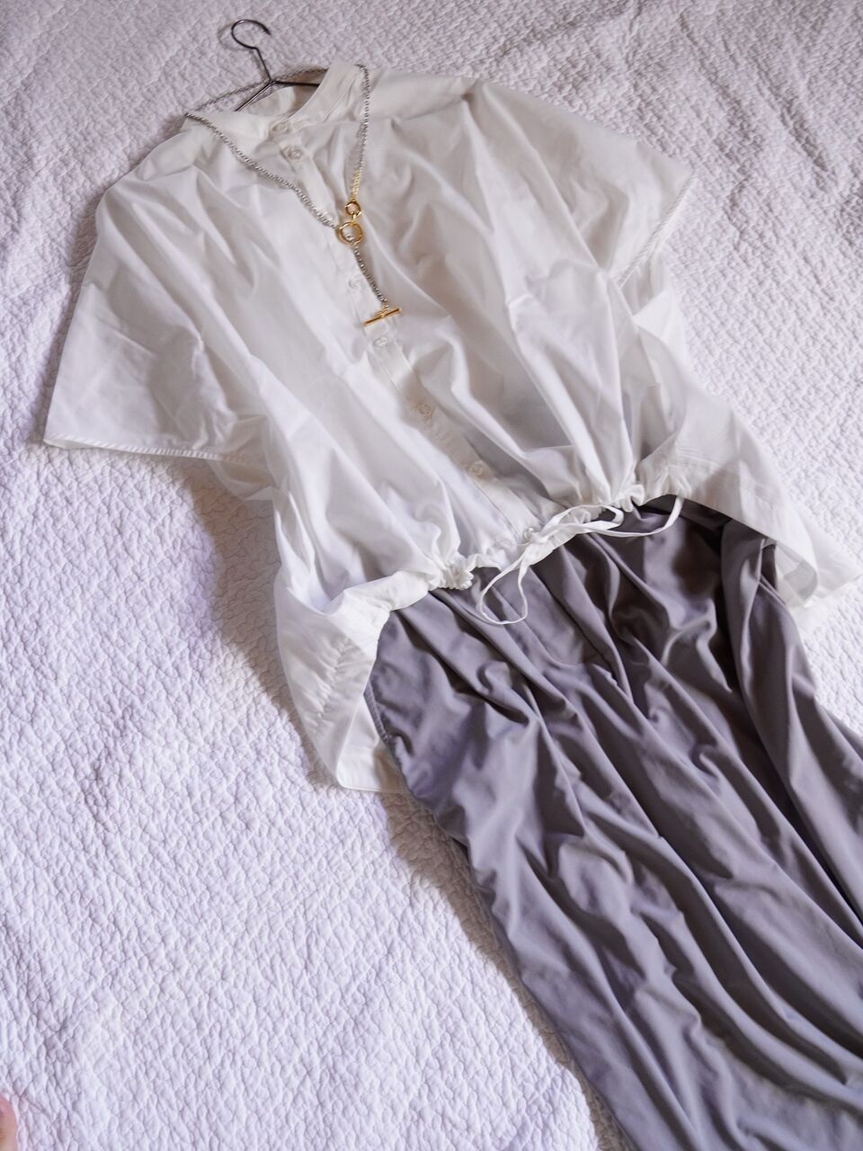 先ほどのブラウスにネックレスを合わせる
