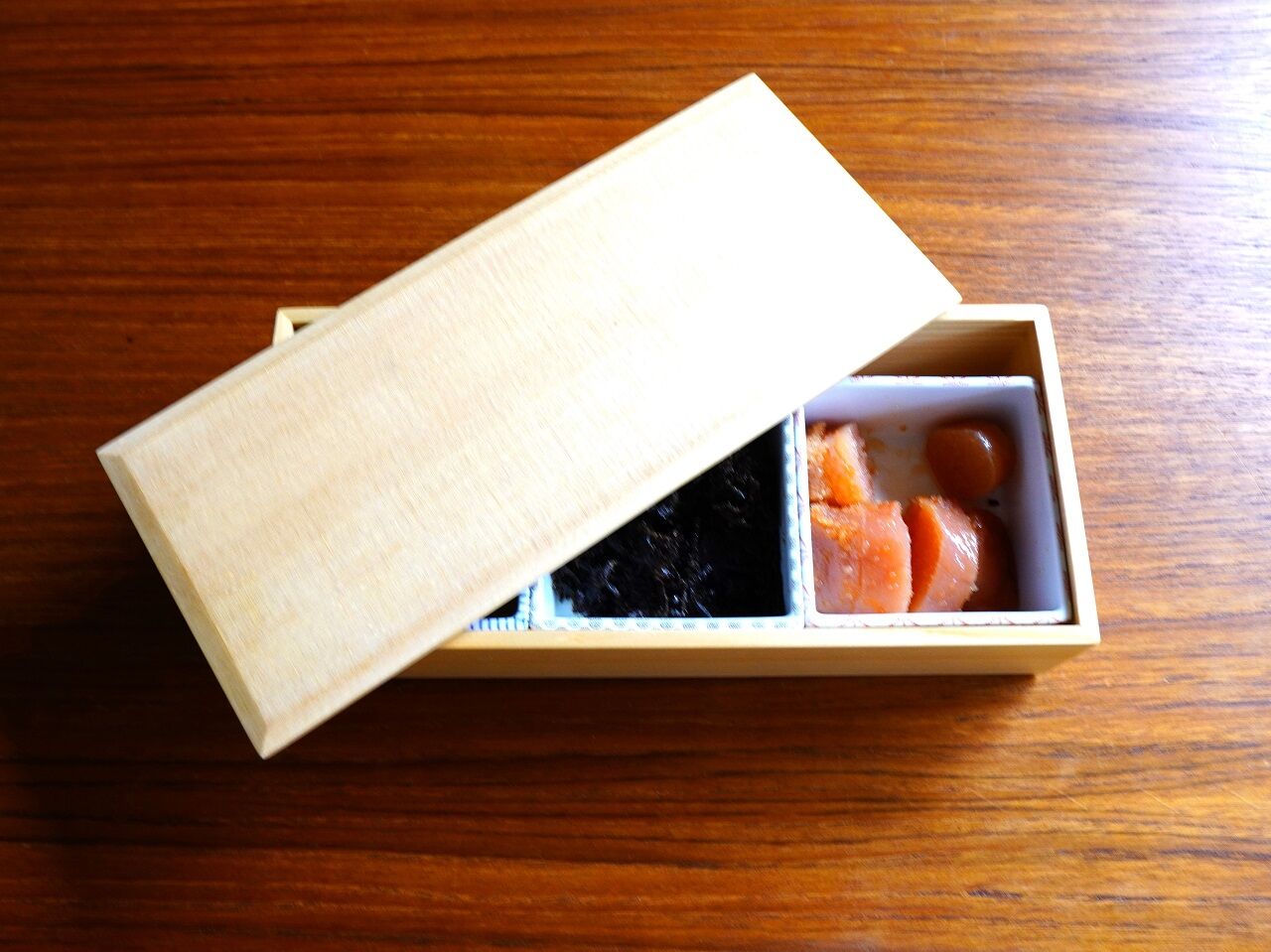 偶然ぴったり木のお重に3個