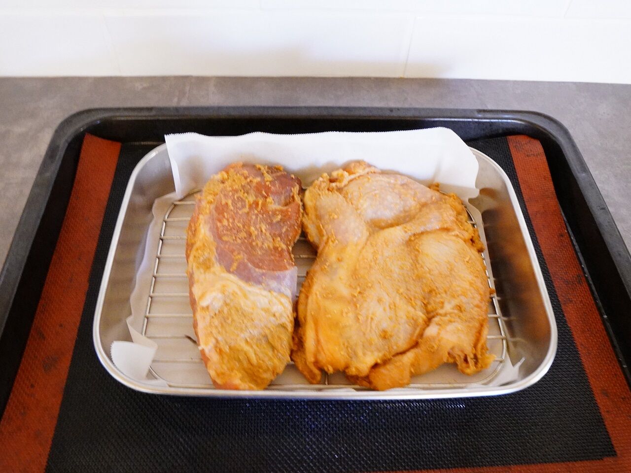 鶏肉と豚肉をオーブンで焼きました!