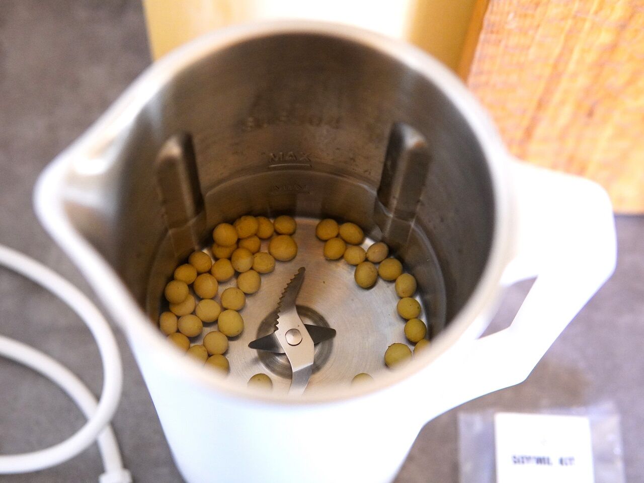 乾燥大豆と水をいれてスイッチ押すだけで
