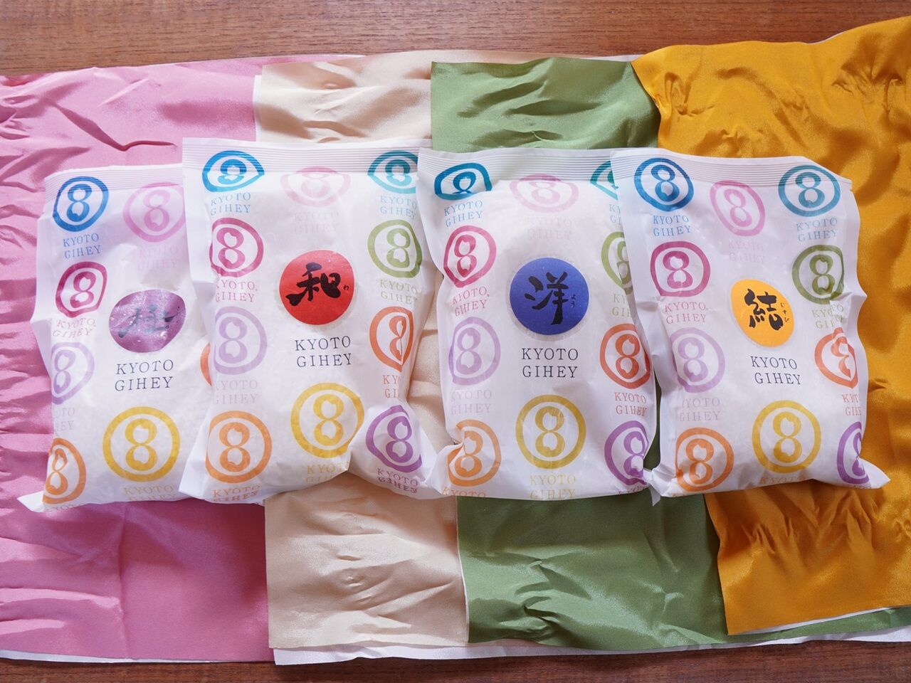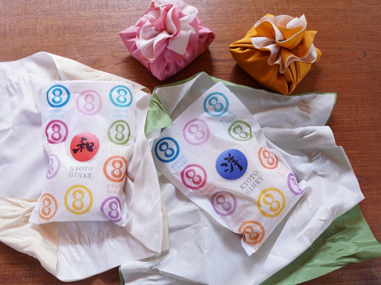 かわいいカラフルな風呂敷に包まれた