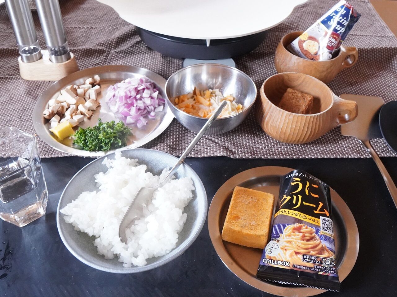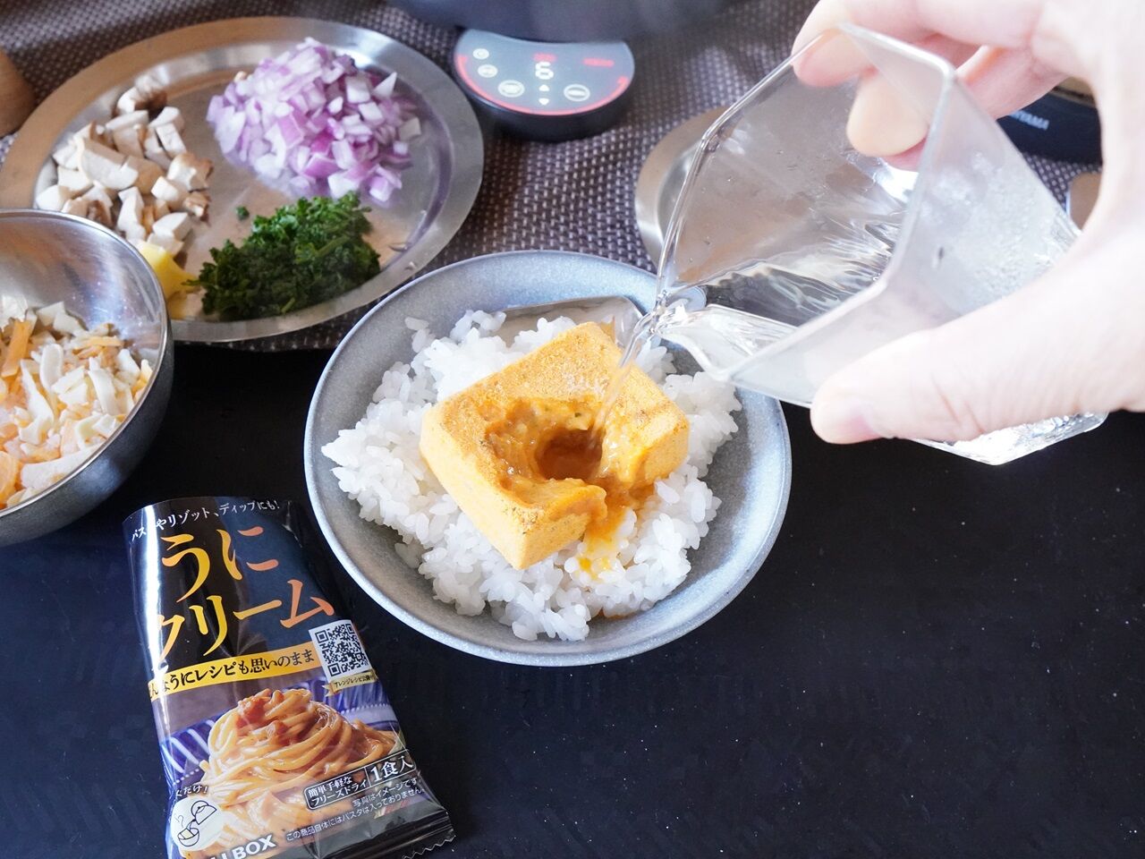 分量の温かいご飯にうにクリーム