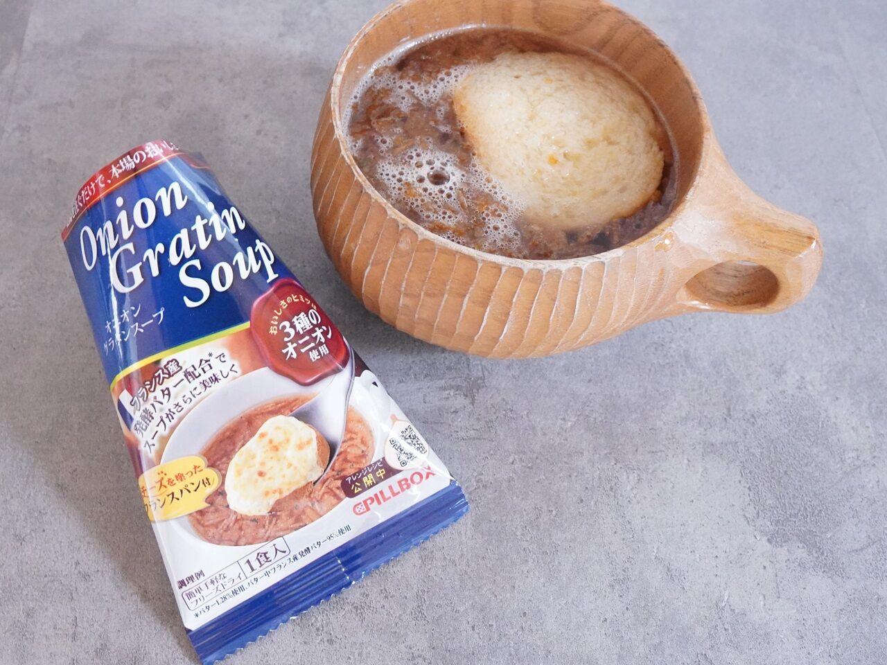オニオングラタンスープはお湯に