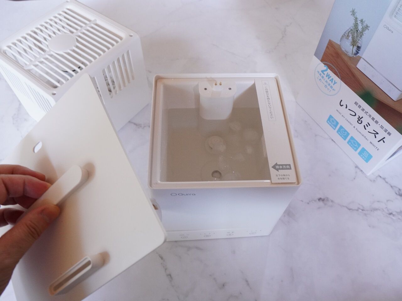 水をタンクに入れて扇風機を