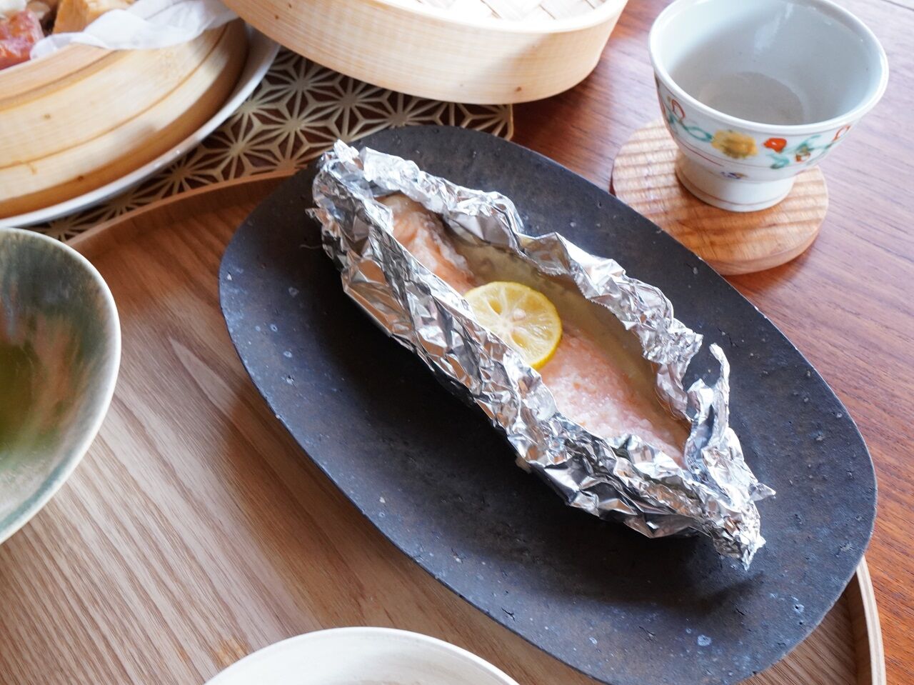 塩麹に馴染ませた秋鮭をホイルに