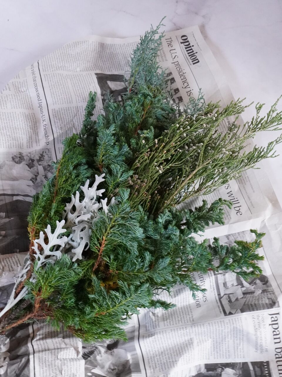 グリーンリースの花材です。