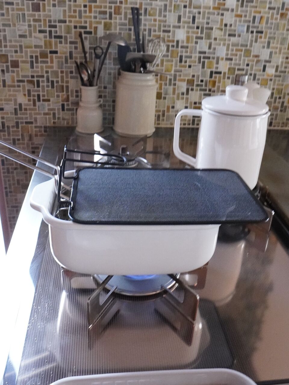 四角い揚げ鍋にぴったりの四角い揚げ編みです。