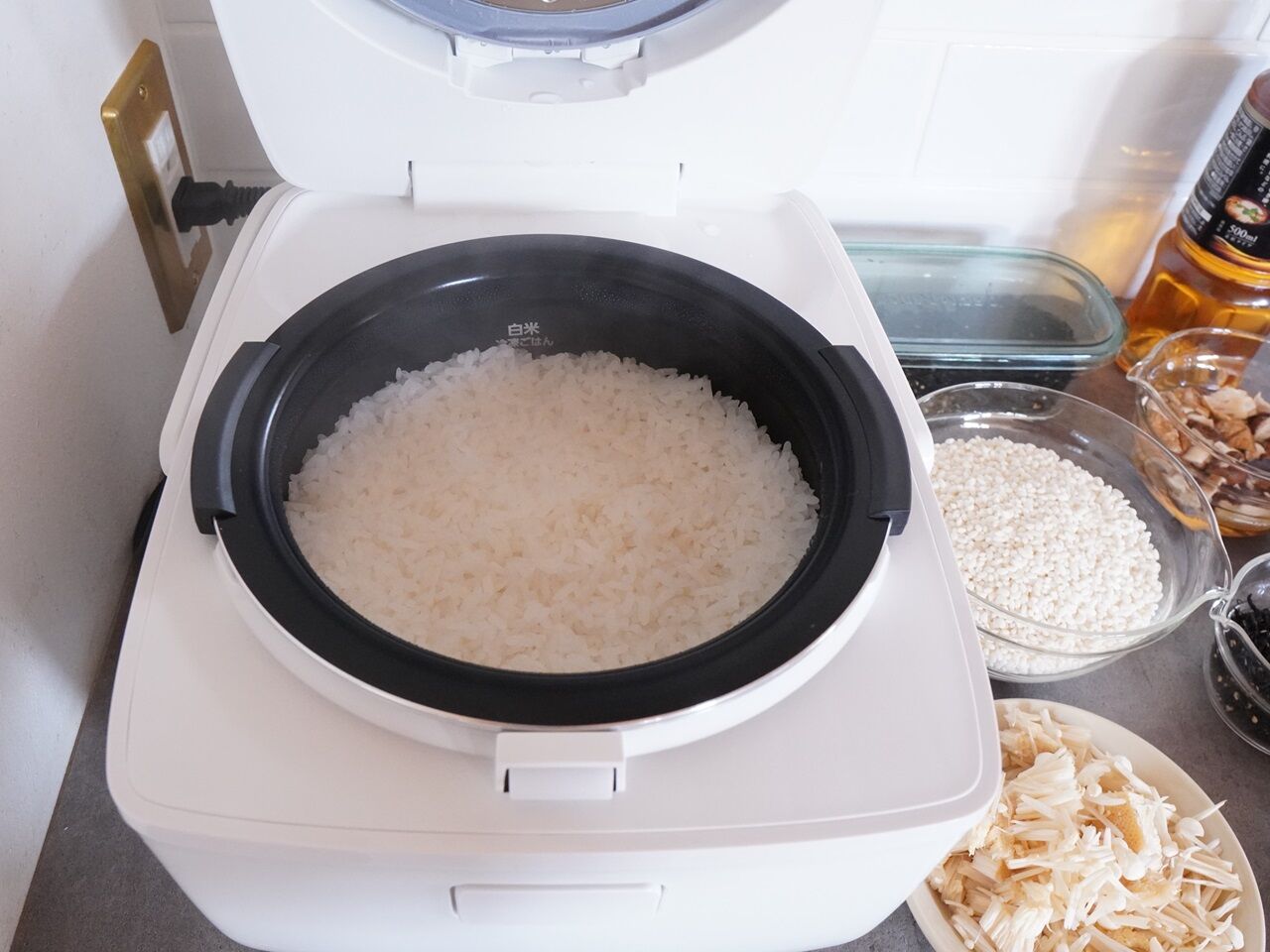 おこわ作るときもち米前日から水に浸して
