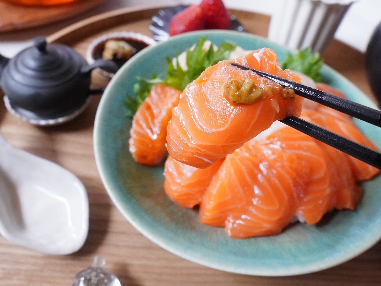 生のサーモンのお刺身も最高ですが、