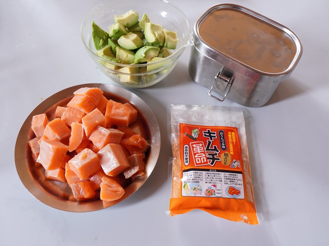 生サーモンのおさしみとアボガドの