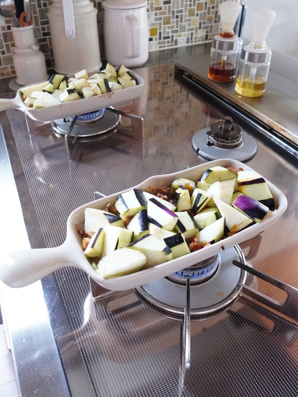 3.乱切りにしたなすをグリラーに敷き詰める