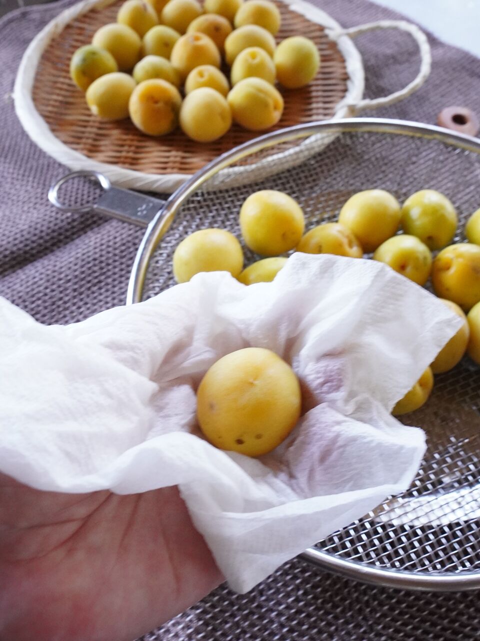 キッチンペーパーで一つ一つ丁寧に拭きます。