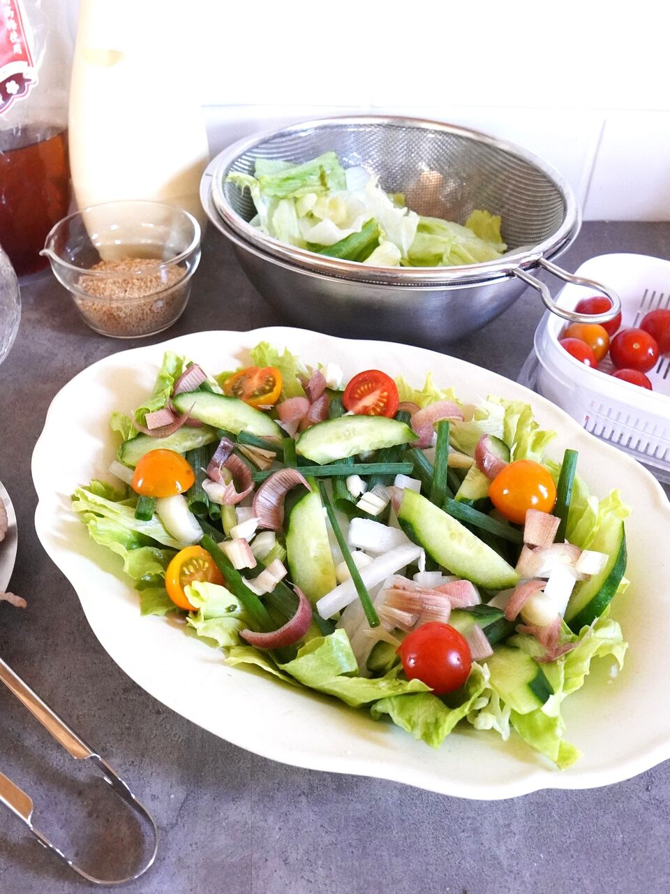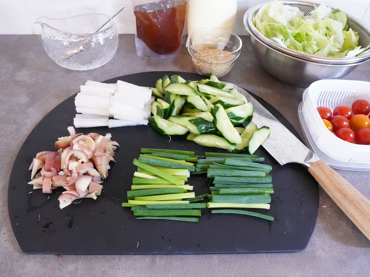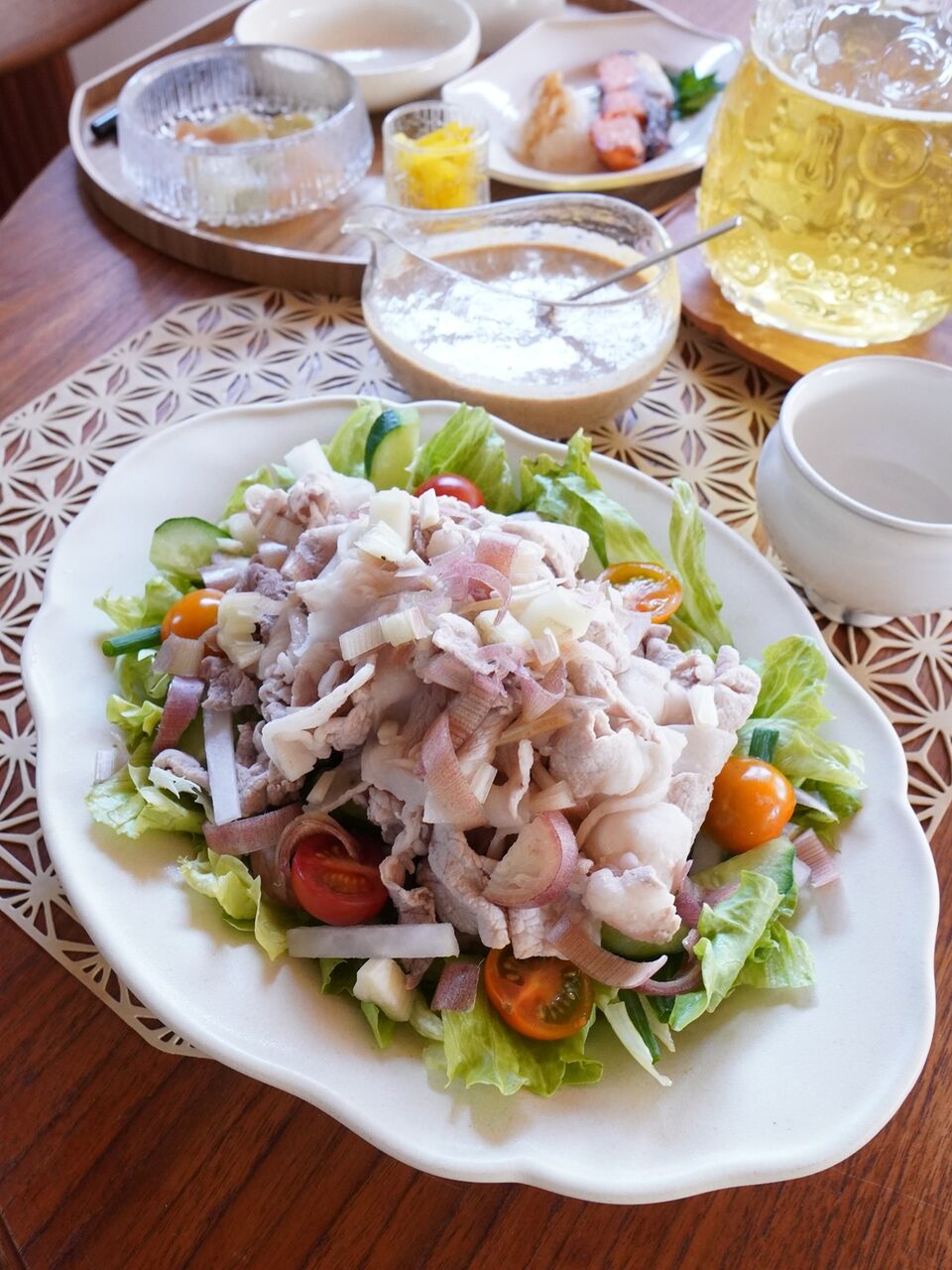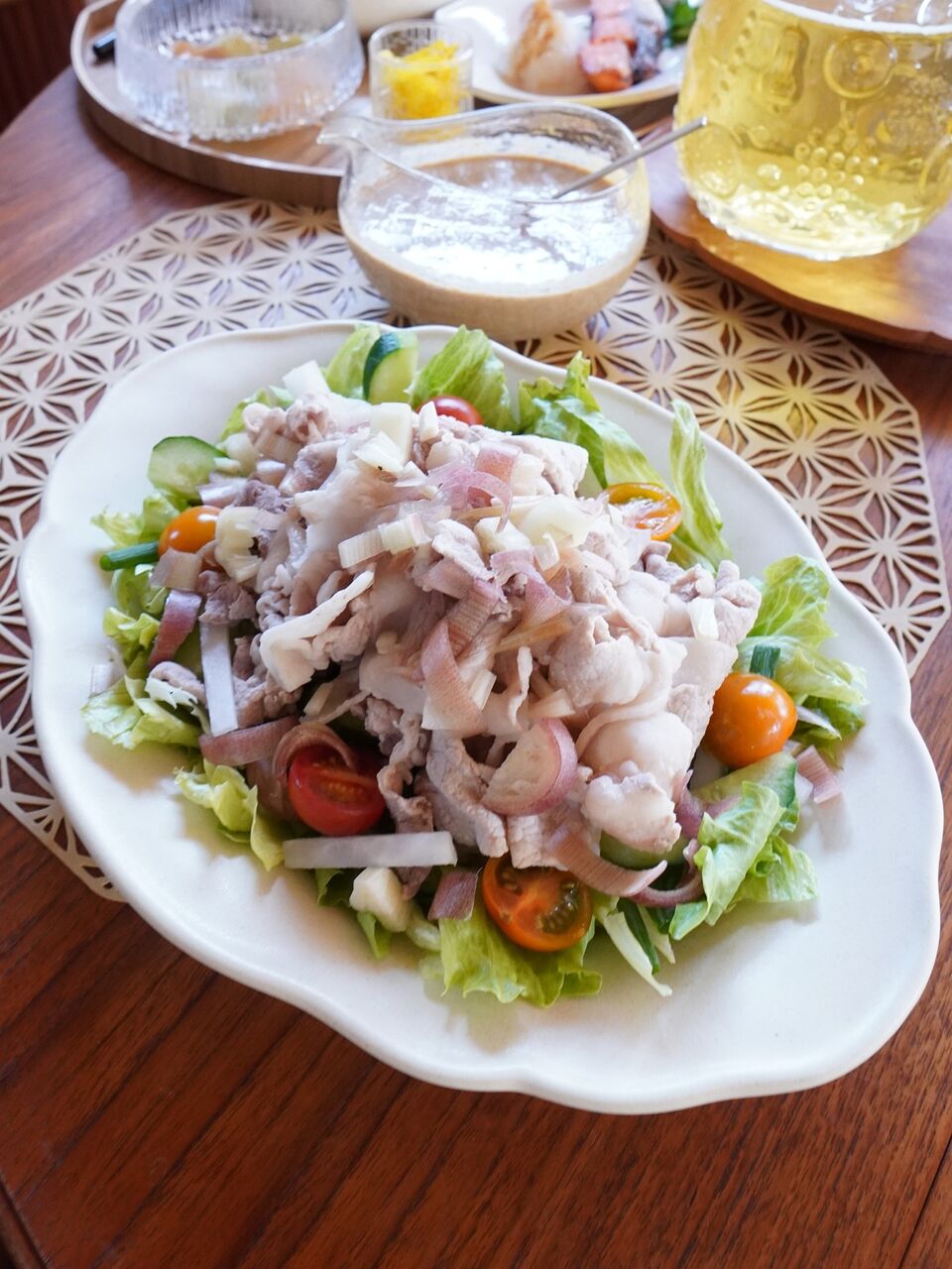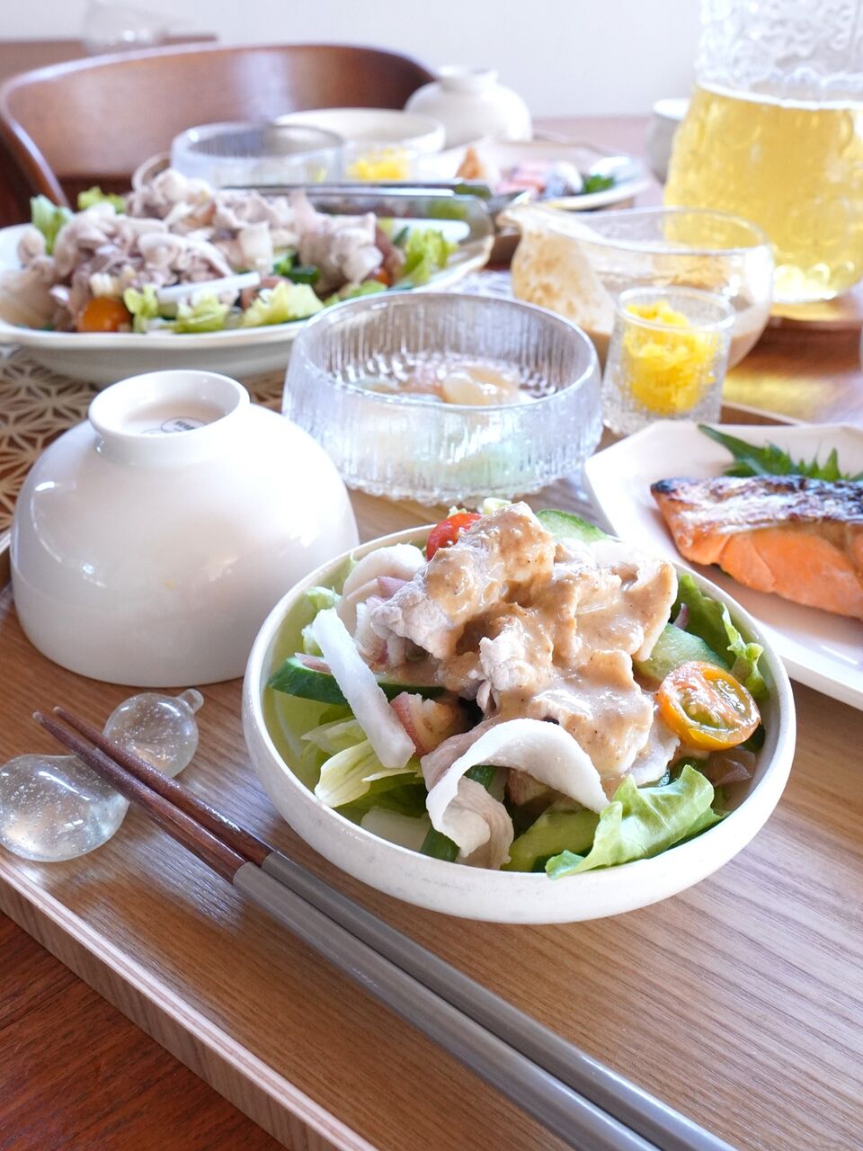 YouTubeを見ながら忠実に再現した冷しゃぶ献立。