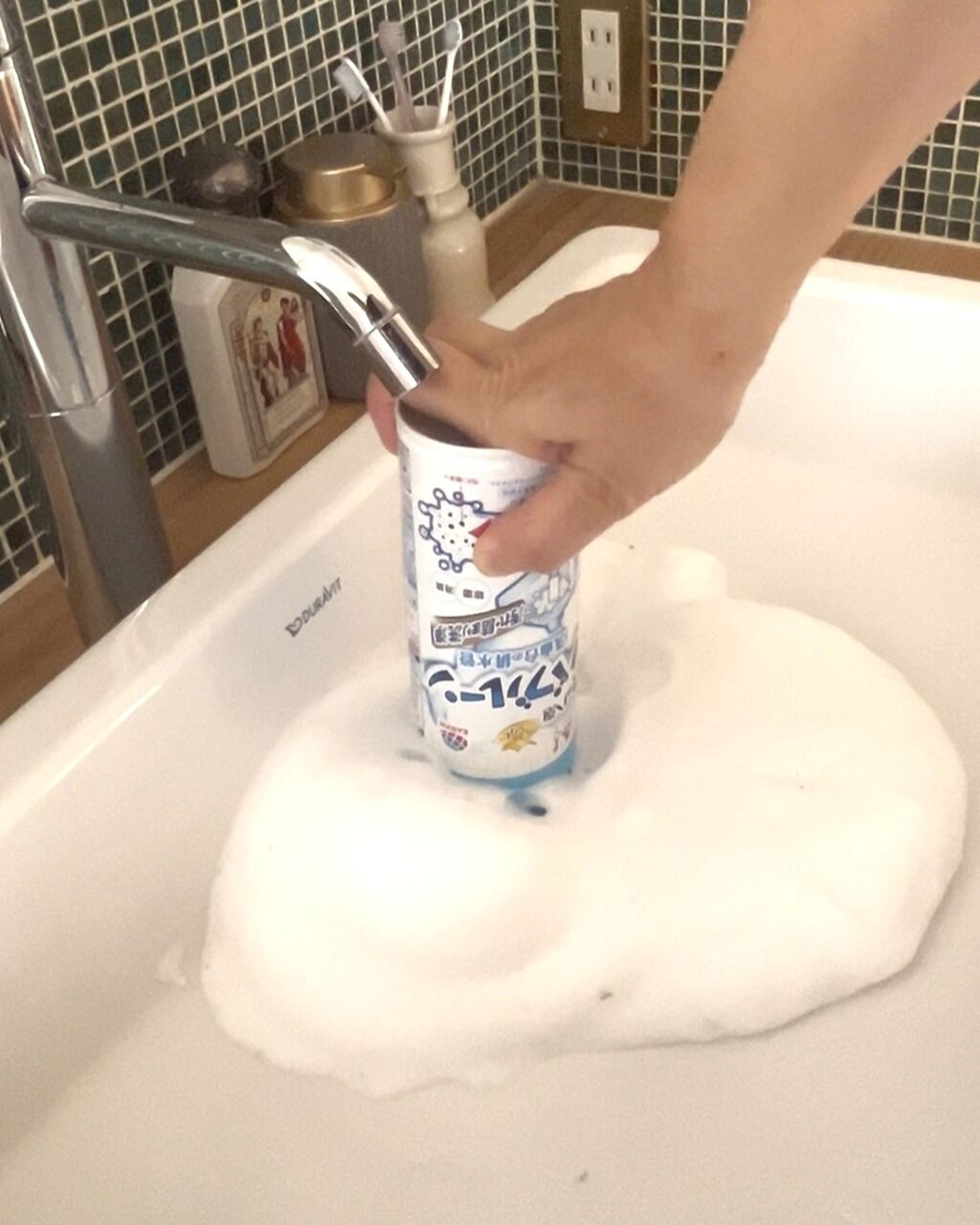洗面台排水口奥泡洗浄リール動画▼