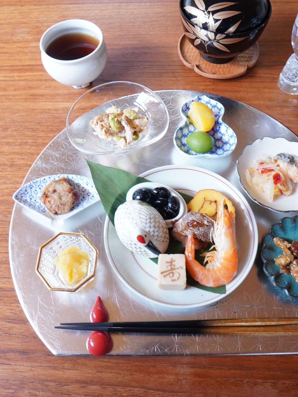 盛り付けてみると、さらに華やかでお正月気分に。