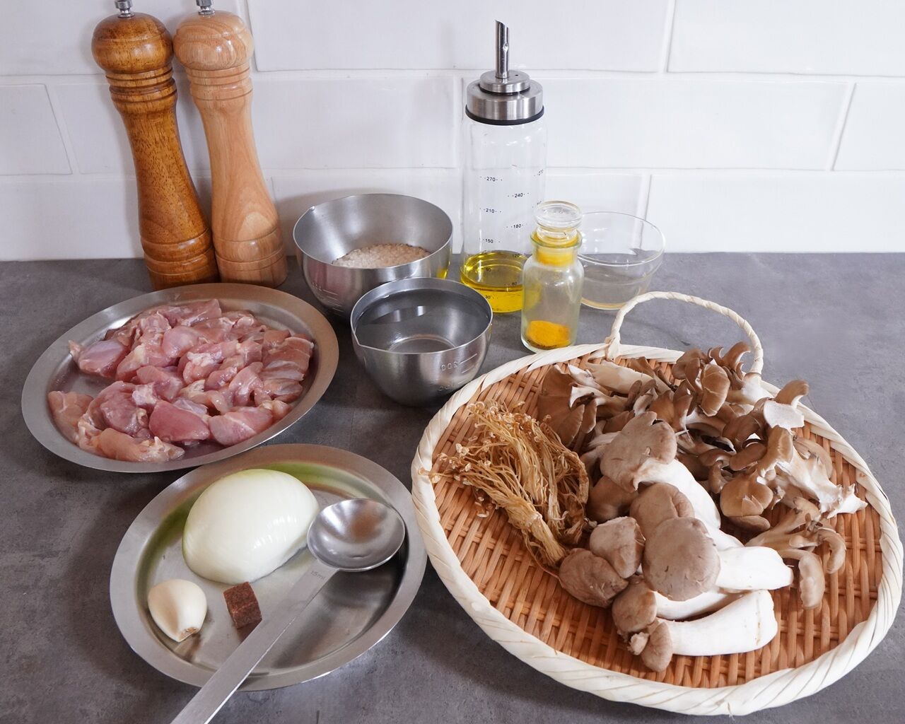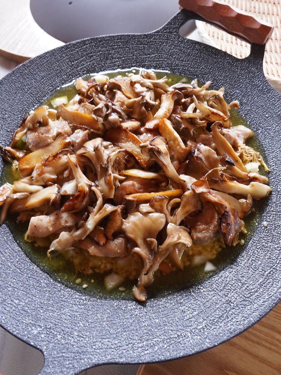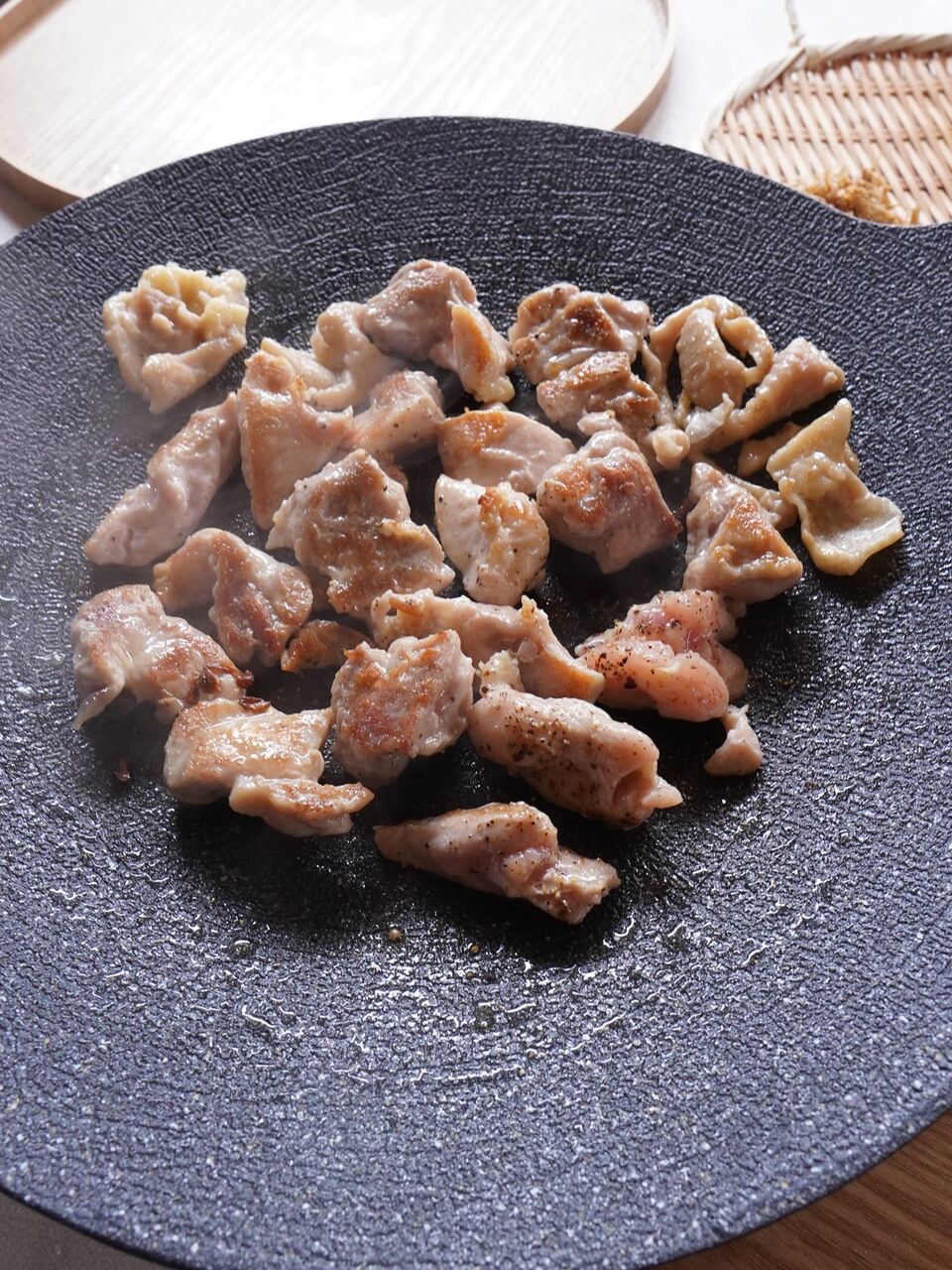 ふたを開けると、鶏肉ときのこのこんがりした