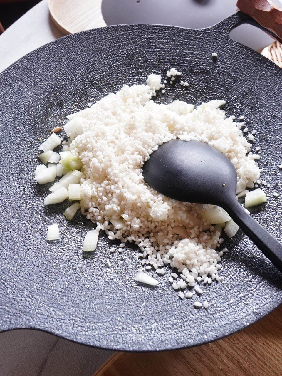 具材を一旦取り出し、米を炒める