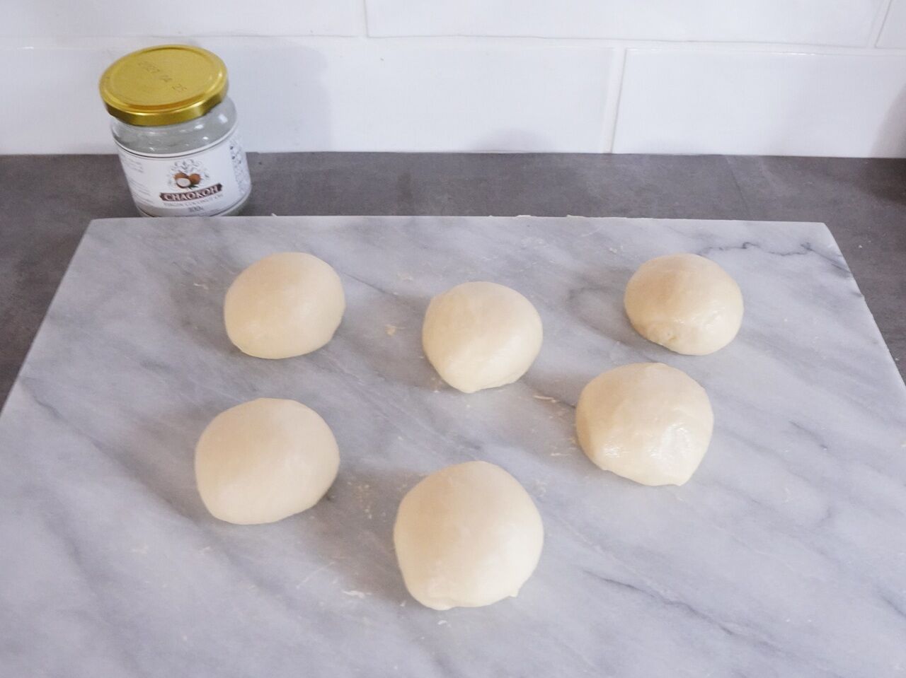 パンのように5分ほどこねて生地を分割し、