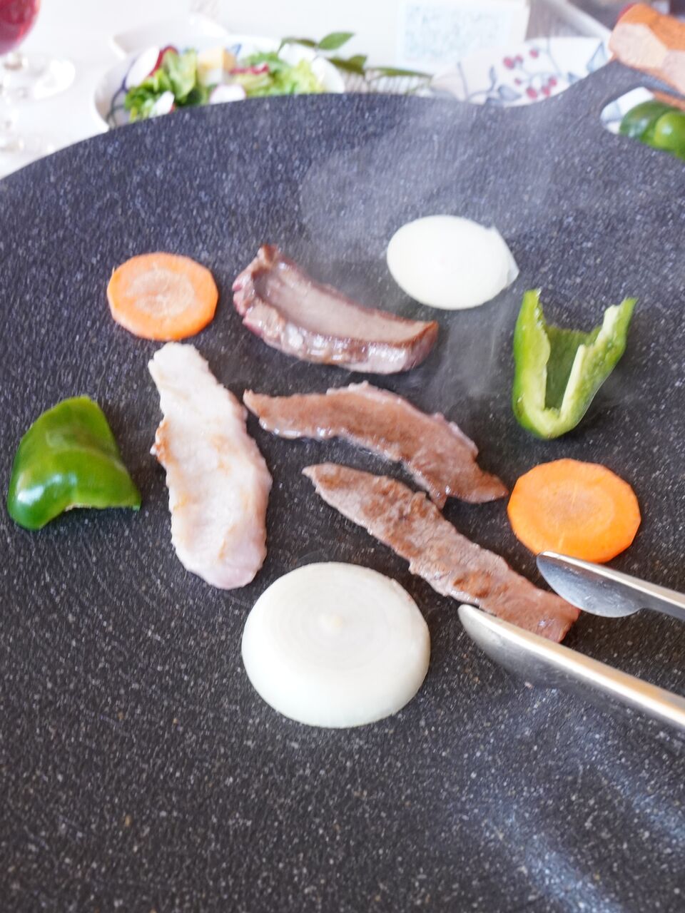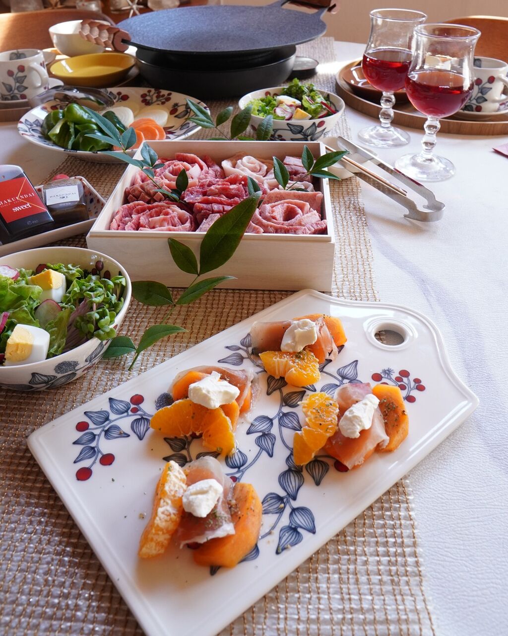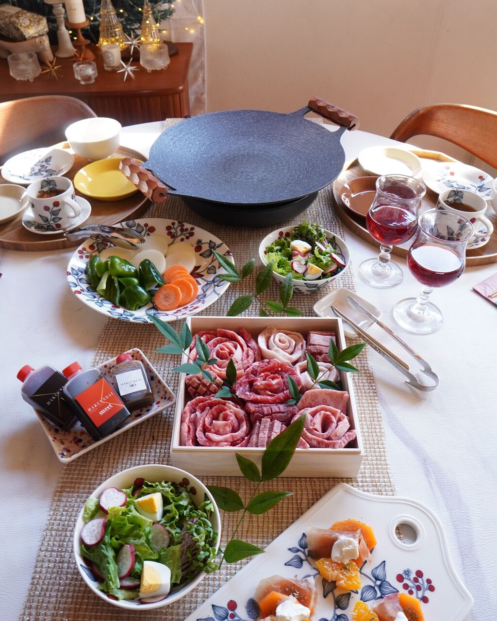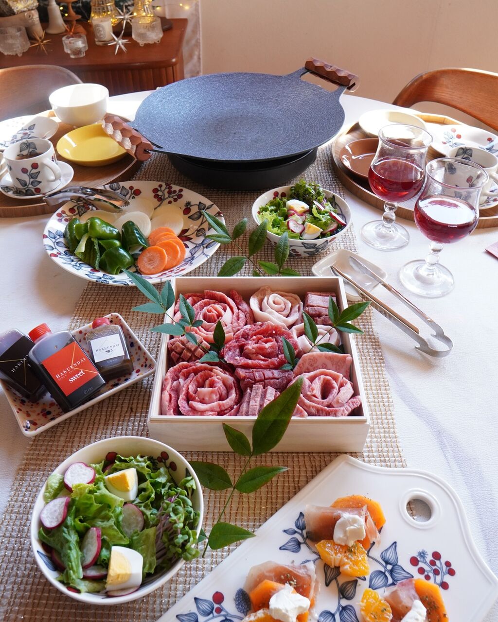 お肉のお重を真ん中に置いたらテーブルが